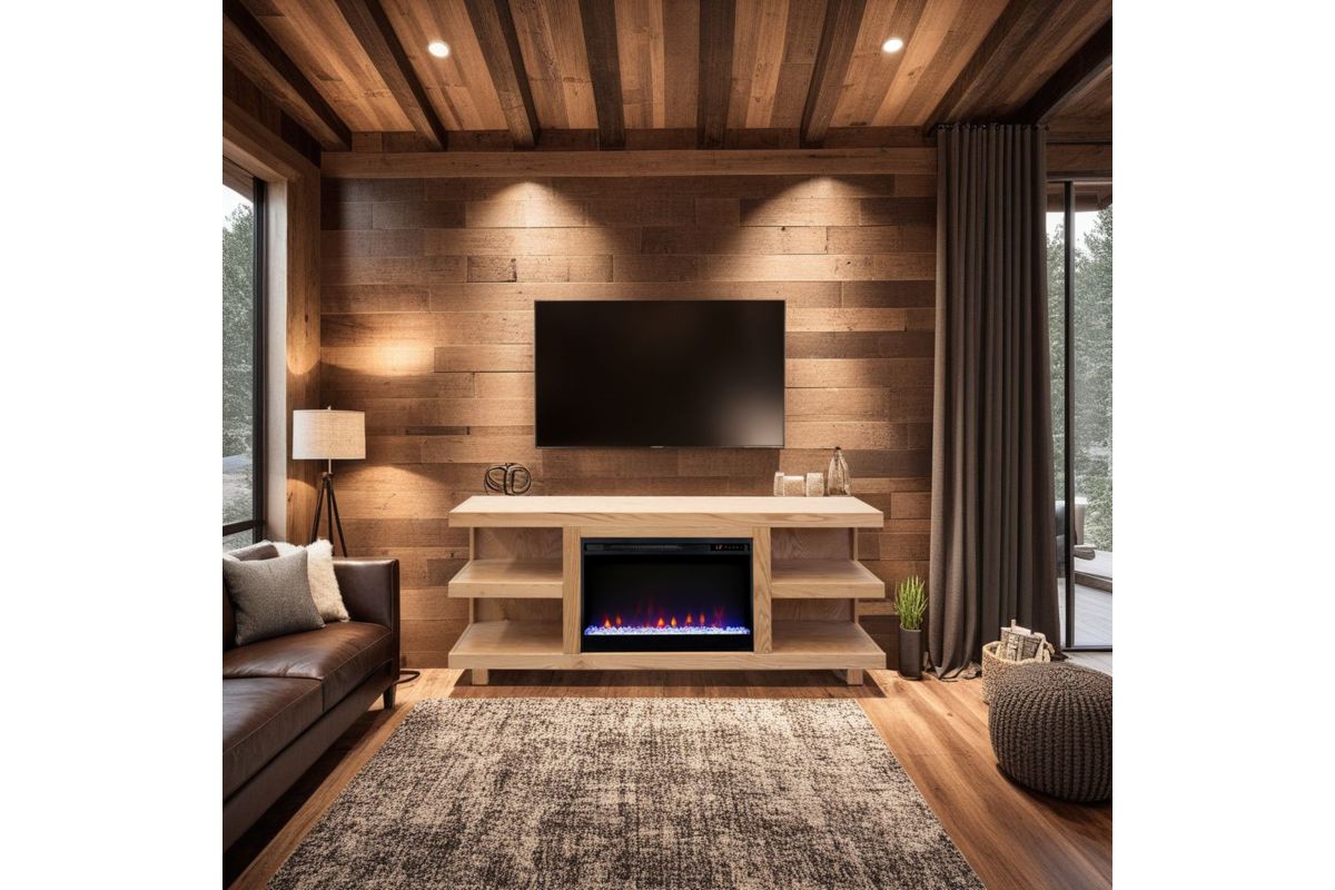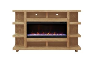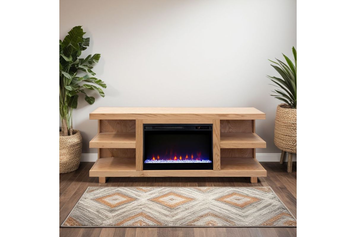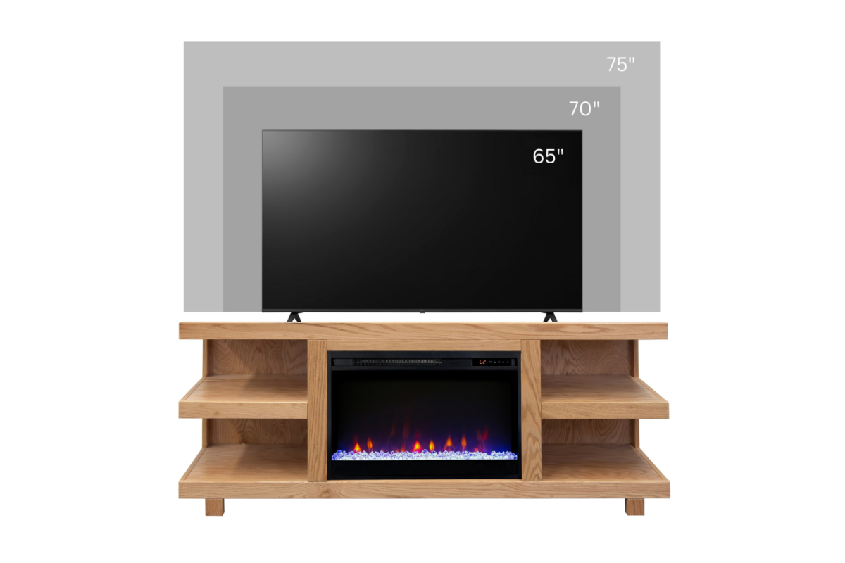 The Laurel Canyon 65 inch Fireplace TV Stand Console delivers the perfect blend of modern, urban style with rustic tranquility. Skillfully crafted from Oak Solids and Veneers, this robust Entertainment Center with Fireplace is available in your choice of three finish and features unique, open-ended shelving. This Fireplace TV Console is ideal for TVs up to 75 inches and will provide ample space to showcase home décor and house media and gaming consoles. Cable management openings on the back panel will keep all cords and wires concealed. The 26" Electric Fireplace Insert with crystals includes multiple settings that will heat up to 400 square feet and a remote control. Four (included) screws make securing the fireplace insert to the console quick and simple. From mountain lodge to urban loft, the clean lines of Laurel Canyon will be a stunning and welcome addition to any home.