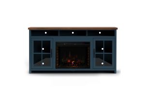 The Nantucket 74" Fireplace TV Stand Console from Bridgevine Home delivers a flawless combination of modern farmhouse style and country simplicity. Beautifully crafted from Poplar Solids, Okoume Veneers and Knotty Alder, this Fireplace Entertainment Center features a two-tone Blue Denim and Whiskey finish and oil-rubbed Bronze hardware. Ideal for TVs up to 85 inches, this Fireplace TV Stand includes two glass windowpane doors, three shelves and cable management on the back panel for media and gaming console storage. The 28" electric fireplace insert includes a remote control and multiple settings allow for heat up to 400 square feet. Four (included) screws make securing the fireplace insert to the console quick and simple. Minimal assembly required