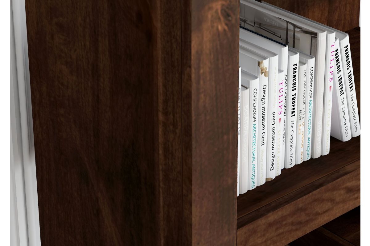 The Sausalito 79" high Bookcase from Bridgevine home delivers a modern robust silhouette with a slightly rustic and urban feel. Skillfully crafted from Knotty Alder Solids and Veneers, this bookshelf boasts intentional distressing and a rich Whiskey finish that enhances the natural wood grain. Featuring seven shelving areas, this bookshelf is ideal to showcase home decor, house your book collection or organize office supplies. Whether placed in your living room, home office or bedroom, this bookcase will be a welcome addition to your home. Fully assembled upon arrival, all furniture from Bridgevine Home is ready to unbox and enjoy.