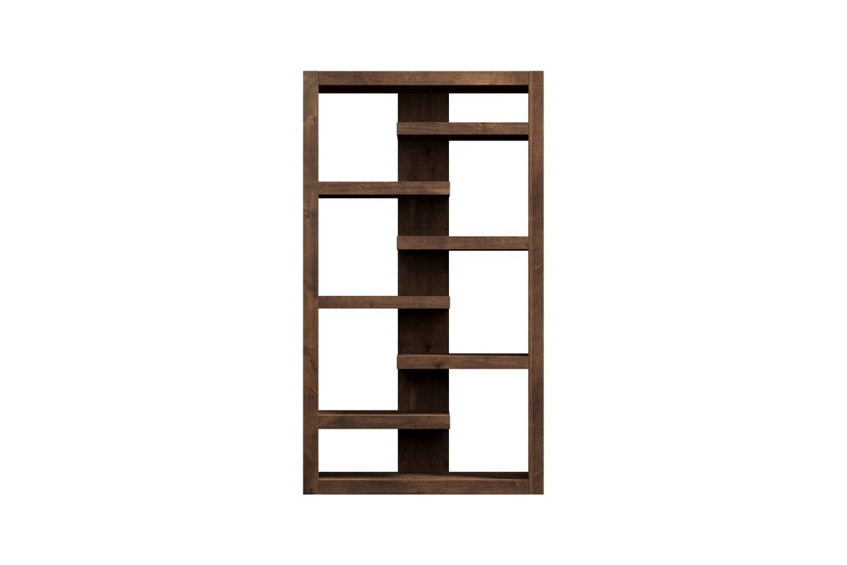 The Sausalito 72" high Bookcase from Bridgevine home delivers a modern robust silhouette with a slightly rustic and urban feel. Skillfully crafted from Knotty Alder Solids and Veneers, this bookshelf boasts intentional distressing and a rich Whiskey finish that enhances the natural wood grain. Featuring six alternating shelves, this bookshelf is ideal to showcase home décor, house your book collection or organize office supplies. Whether placed in your living room, home office or bedroom, this bookcase will be a welcome addition to your home. Fully assembled upon arrival, all furniture from Bridgevine Home is ready to unbox and enjoy.