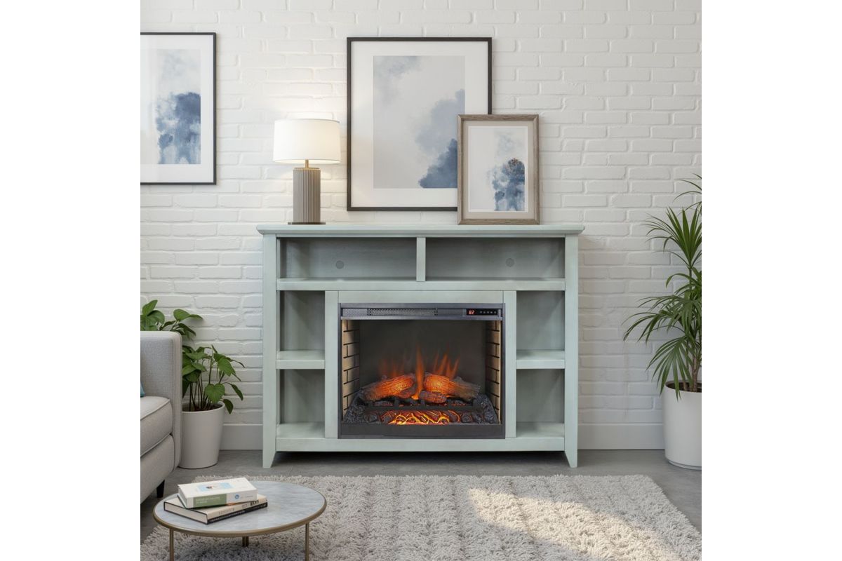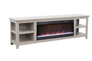 The Studio 56 inch Fireplace Mantel from Bridgevine Home delivers simple, transitional style and will make a versatile addition to any room in your home. Skillfully crafted from Poplar Solids and Okoume Veneers, this Electric Fireplace Mantel features a Sandstone finish and ample storage space on open shelving. The 42"electric fireplace insert includes a remote control and multiple settings allow for heat up to 400 square feet. Installation is quick and simply requires securing the fireplace insert to the mantel with four (included) screws. Set the mantel in place, plug in and get set to get cozy! Minimal assembly required.