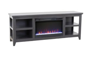 The Studio 65" Fireplace TV Stand from Bridgevine Home delivers simple, versatile, transitional style. Skillfully crafted from Poplar Solids and Okoume Veneers, this Electric Fireplace TV Console features a Black finish, ample storage space on open shelving and will accommodate TVs up to 75 inches. The 26" electric fireplace insert includes a remote control and multiple settings allow for heat up to 400 square feet. Four (included) screws make securing the fireplace insert to the console quick and simple. Minimal assembly required.