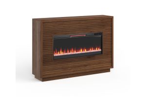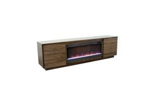 Bring home the Stardust 89 inch Fireplace TV Stand from Bridgevine Home for a sophisticated and upscale addition to your living room or great room. Artfully crafted from Poplar Solids and Okume Veneers in a Bourbon finish, this showstopping Electric Fireplace TV Console boasts clean lines and chic modern style. Featuring two doors, two shelves and cable management openings on the back panel, this Fireplace Entertainment Center will accommodate TVs up to 100 inches and provide ample storage for media and gaming consoles. The 42" electric fireplace insert includes a remote control and multiple settings allow for heat up to 400 square feet. Four (included) screws make securing the fireplace insert to the console quick and simple. Minimal assembly required.