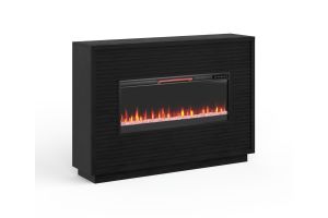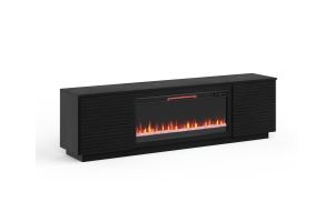 Bring home the Stardust 89 inch Fireplace TV Stand from Bridgevine Home for a sophisticated and upscale addition to your living room or great room. Artfully crafted from Poplar Solids and Okume Veneers in a Black finish, this showstopping Electric Fireplace TV Console boasts clean lines and chic modern style. Featuring two doors, two shelves and cable management openings on the back panel, this Fireplace Entertainment Center will accommodate TVs up to 100 inches and provide ample storage for media and gaming consoles. The 42" electric fireplace insert includes a remote control and multiple settings allow for heat up to 400 square feet. Four (included) screws make securing the fireplace insert to the console quick and simple. Minimal assembly required.