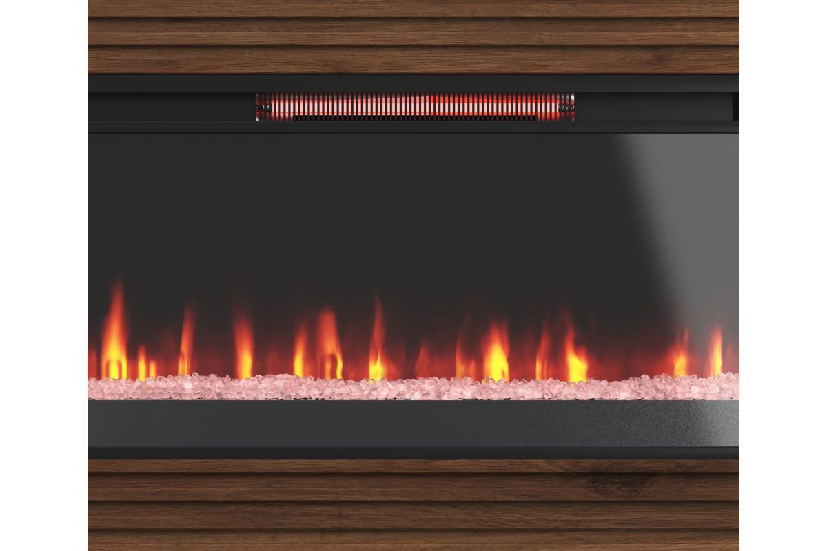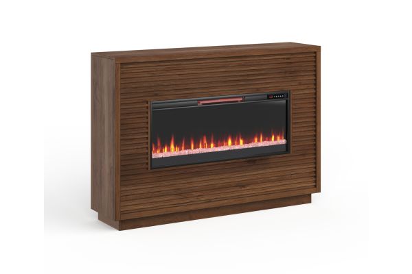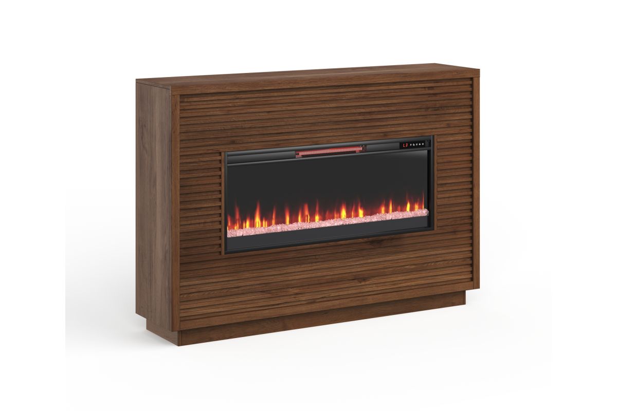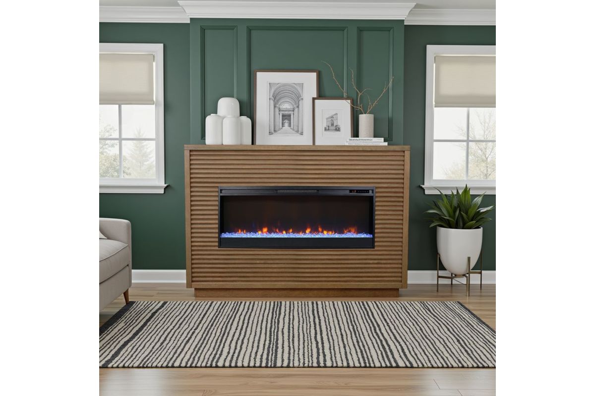 Bring home the Stardust 62 inch Fireplace Mantel from Bridgevine Home for a sophisticated and upscale addition to any room in your home. This sensational Electric Fireplace Mantel is artfully crafted from Poplar Solids and Okume Veneers and features a Bourbon finish and horizontal slat detailing. The 42" electric fireplace insert includes a remote control and multiple settings allow for heat up to 400 square feet. Installation is quick and simply requires securing the fireplace insert to the mantel with four (included) screws. Set the mantel in place, plug in and get set to get cozy!