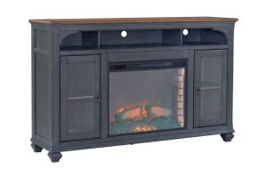The Americana 86 inch Fireplace TV Stand boasts a refreshing coastal twist on traditional style. Skillfully crafted from Rubberwood Solids and Birch Veneers, the subtle distressing, Corduroy Blue finish and Antique Pewter hardware give this Electric Fireplace TV Console an updated look with a timeless heirloom feel. Ideal for TVs up to 95 inches, this Fireplace Entertainment Center includes two framed glass doors, three shelves and cable management on the back panel for media and gaming console storage. The 42" electric fireplace insert includes a remote control and multiple settings allow for heat up to 400 square feet. Four (included) screws make securing the fireplace insert to the console quick and simple. Just like Baseball, Apple Pie and Rock & Roll, the Americana TV Console will become a beloved favorite in your home. Assembly required.
