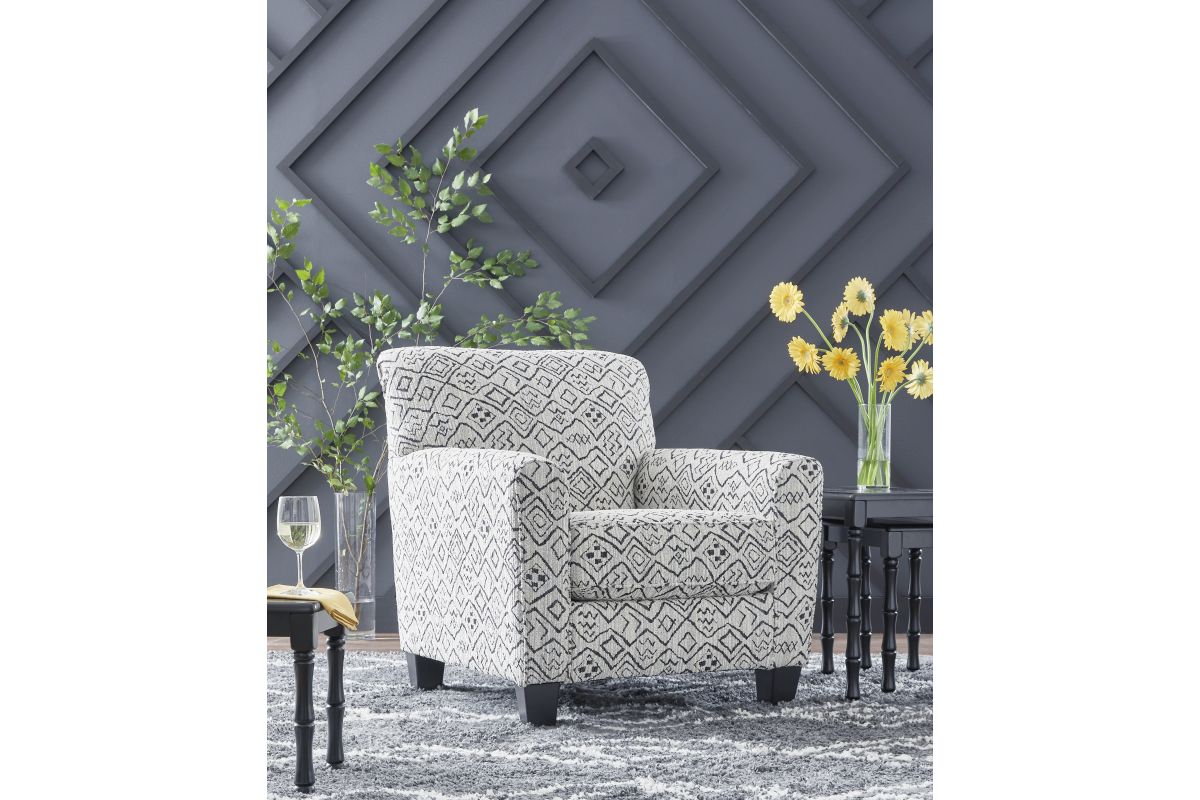 Add visual variation to your contemporary hideaway. This accent chair caps off your aesthetic with a welcome pop of pattern. In neutral hues, the eye-catching piece stays versatile enough to pair with existing seating. Stage it with another chair to create a cozy-chic conversation area, or tuck it in a corner for a stylish spot to rest and relax solo. No assembly required.