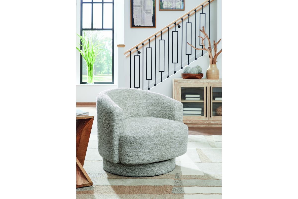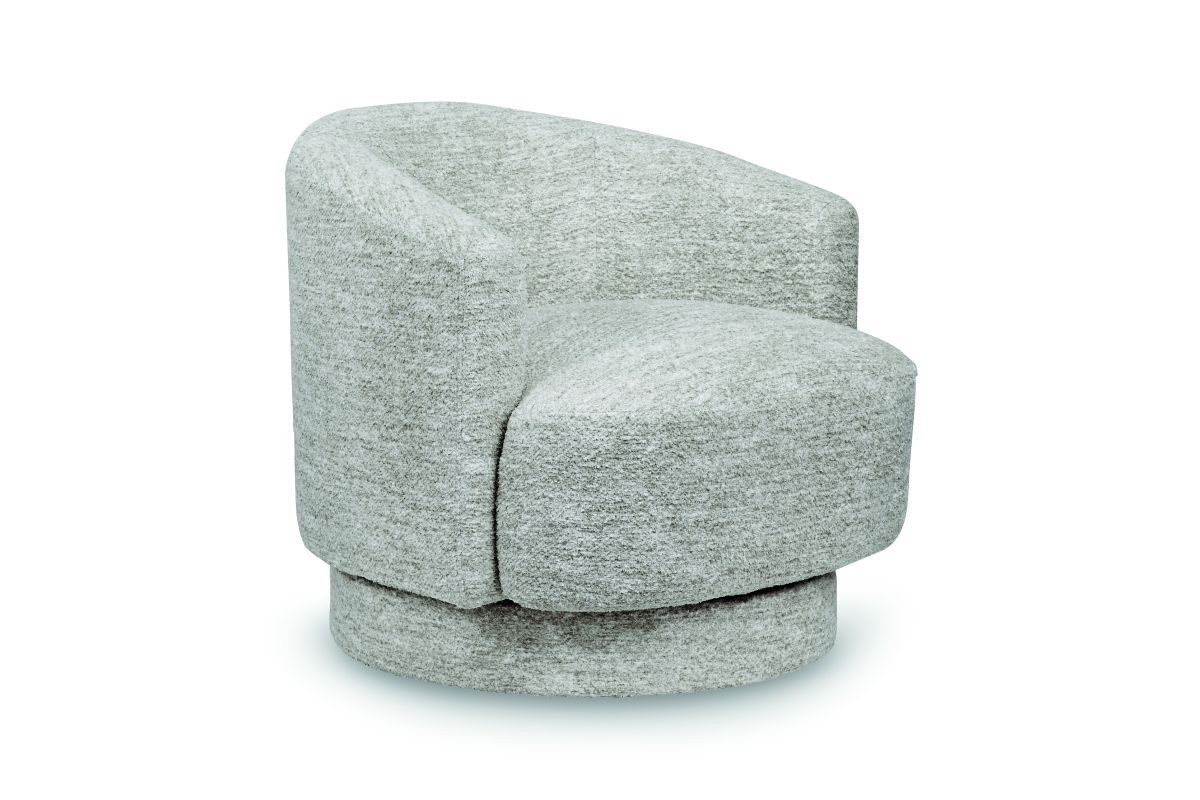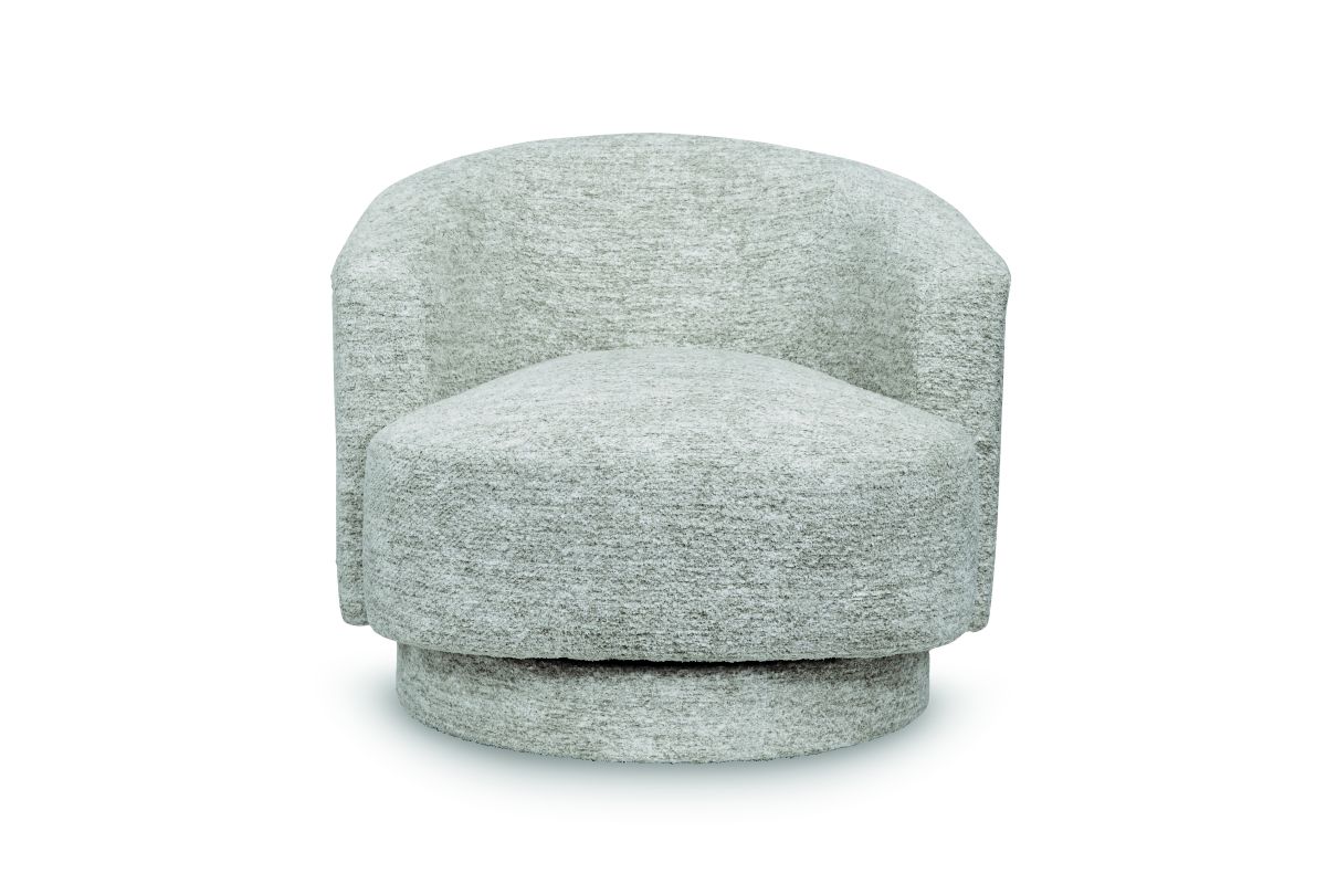 Relaxation meets refinement in this accent chair. With an ultra-soft fabric in a crisp, light neutral, it invites you to curl up in comfort. A 360-degree swivel provides added versatility. Drape a throw blanket over the back, or add an accent pillow for a pop of color�with this chair, the possibilities for cozy-contemporary style are endless. No assembly required.