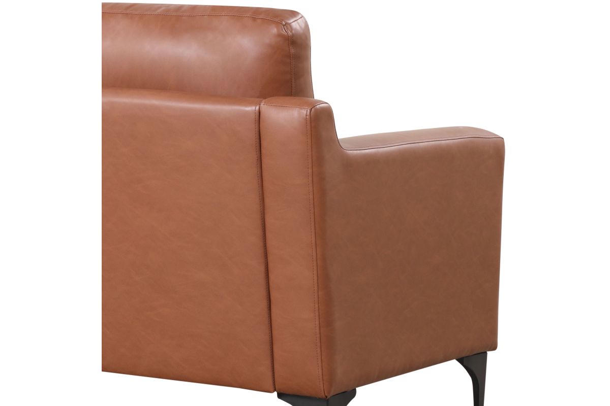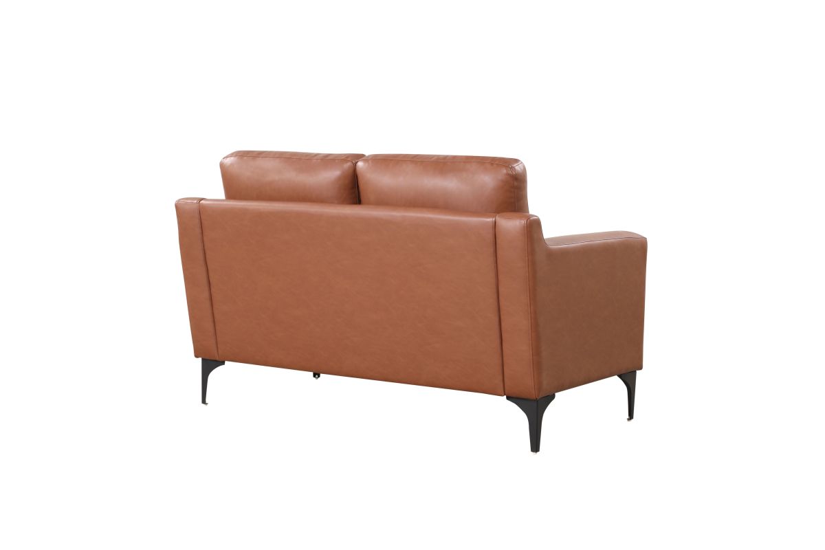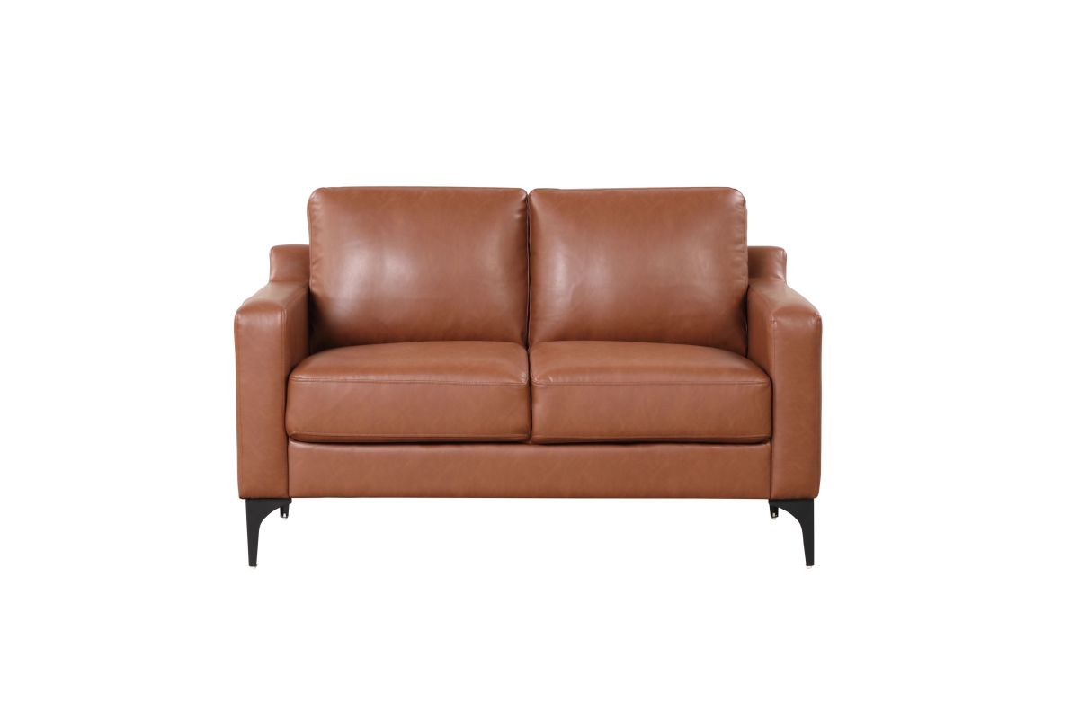 Brighten up your living space with the Serta Florence Sofa Set! The Vegan Leather upholstery’s warm brown tone provides a pop of earth-toned color, while the high-density foam and pocket coils within the compressed seat and back cushions ensure comfort for every guest. The solid hardwood frames give the pieces durability, and the metal legs round out the set’s modern sophistication. Asembly is required upon delivery.