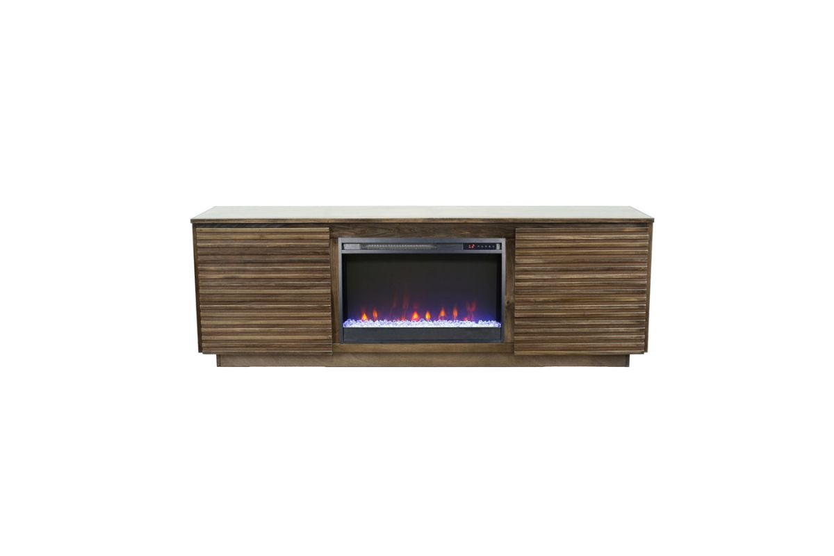 The Stardust 72" Fireplace TV Stand combines sleek design and functionality to enhance any modern living space. It supports TVs up to 100" and offers organized storage with cable management for media devices. The unit includes a 42" fireplace insert, featuring both crystal rocks and a traditional log set, perfect for creating a cozy atmosphere during your entertainment sessions.
