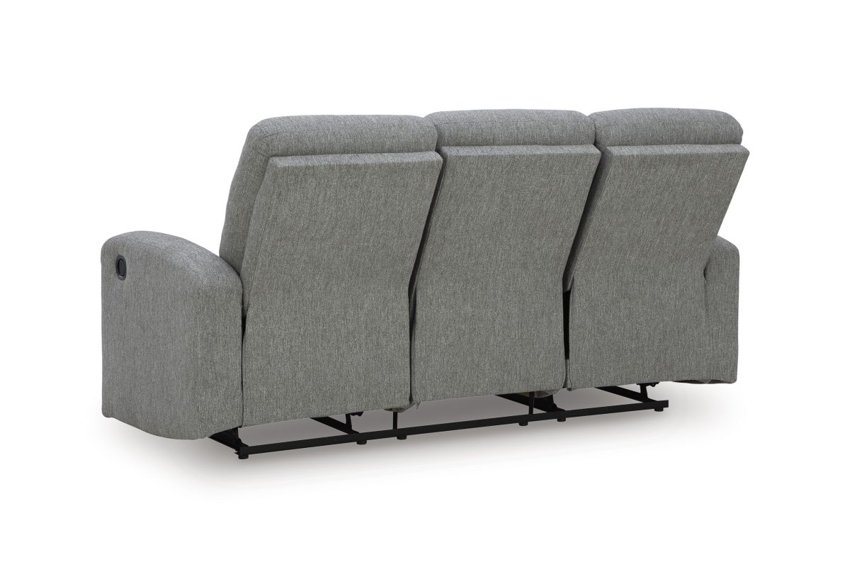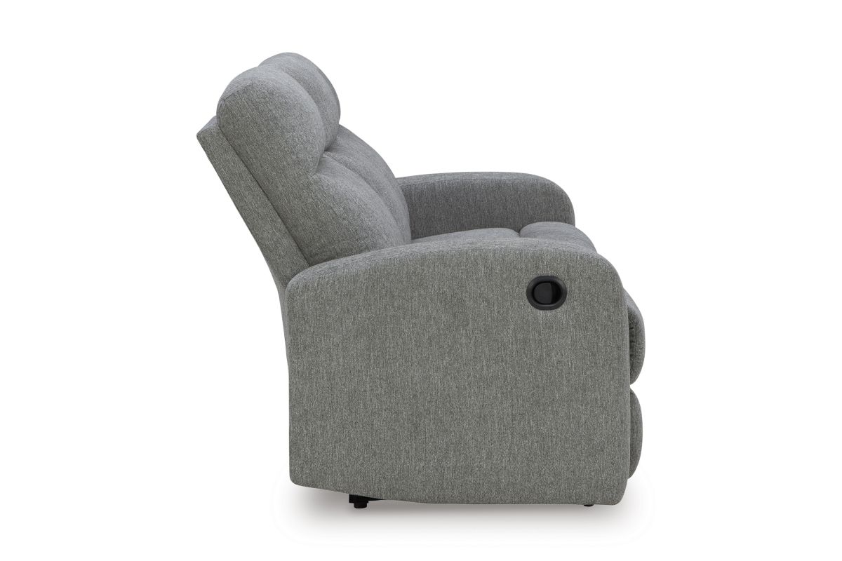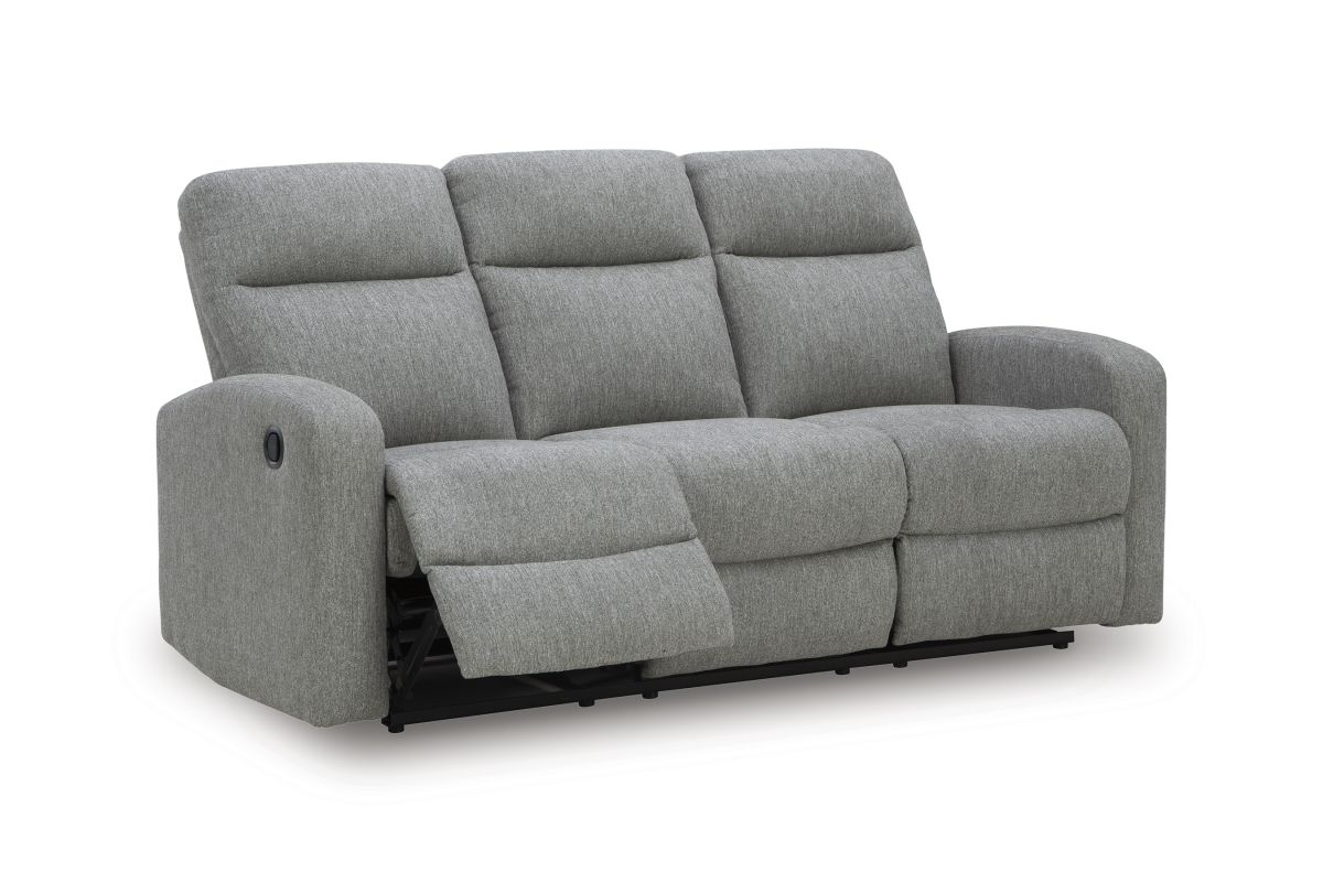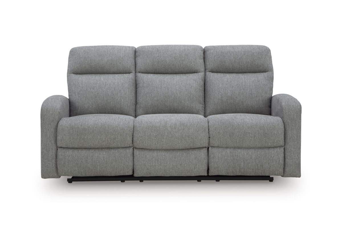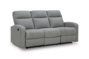 Everyday relaxation, made easy. This reclining sofa takes you back to the basics with simply stylish comfort. With an easygoing neutral hue and classic design, it seamlessly adapts to your living room aesthetic. Pull tab reclining effortlessly takes you from seated to stretched out. No assembly is required.