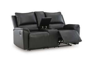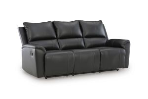 Looking for that perfect blend of comfort and style? This reclining sofa wraps you in luxury with an expertly crafted combination of leather and faux leather upholstery. Its clean lines and rich neutral tone work beautifully in contemporary spaces. With plump pillow top arms and pull tab reclining, it's your go-to spot for relaxing after a long day. No assembly required.