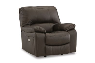 Focus on function. This practical power rocker recliner balances contemporary character and irresistible comfort. Its affordable, expertly matched leather and faux leather upholstery keeps your style up to speed without breaking the bank. Reclining with the touch of a button, this piece plays well in relaxed, luxe seating areas made for quality time. Assembly required.