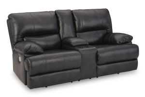 Striking form, meet contemporary function. This power reclining loveseat combines your ideal comfort features, like one-touch reclining and adjustable headrests, into one sophisticated package. With a design defined by the luxe look of black leather, this loveseat pairs beautifully with your uncompromisingly posh aesthetic. No assembly required.