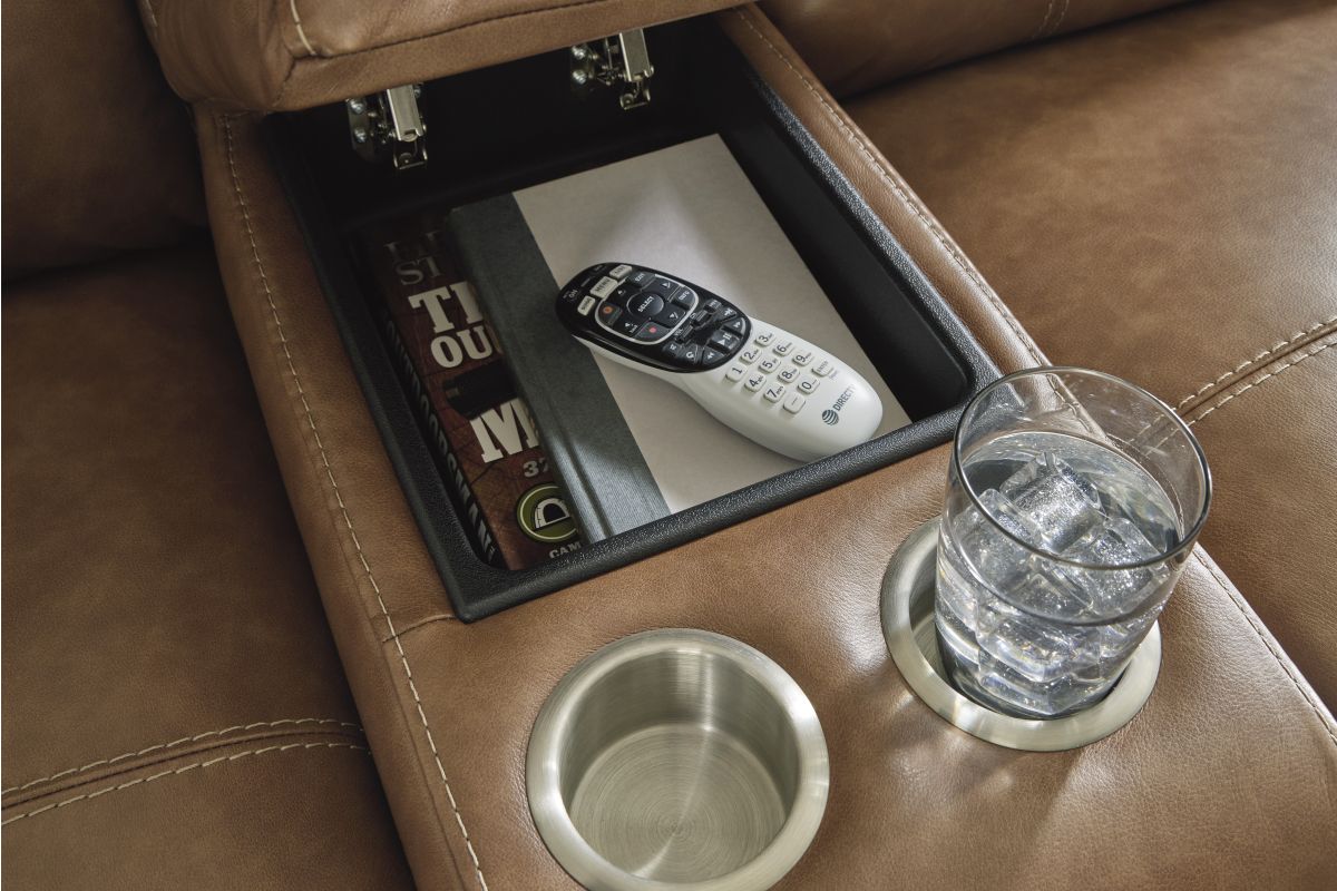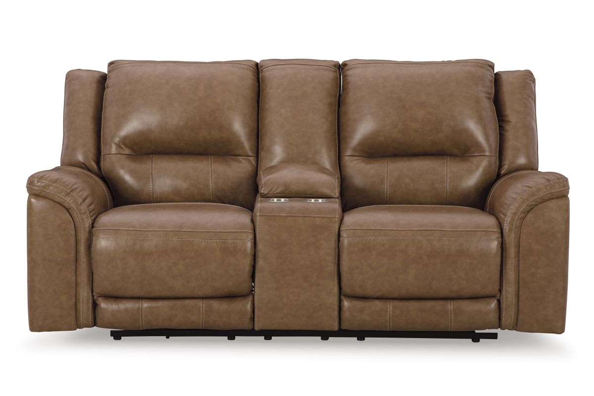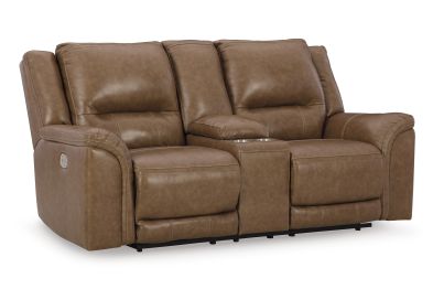 This power reclining loveseat delivers comfort and contemporary style in a big (but not bulky) way. Its supple leather and faux leather upholstery, sumptuous cushioning and one-touch control are sure to take you to your happy place. The loveseat's power adjustable headrests let you fully recline and still be perfectly positioned to watch TV or read. And thanks to the convenient USB port, charging while chilling has never been easier. Assembly required.