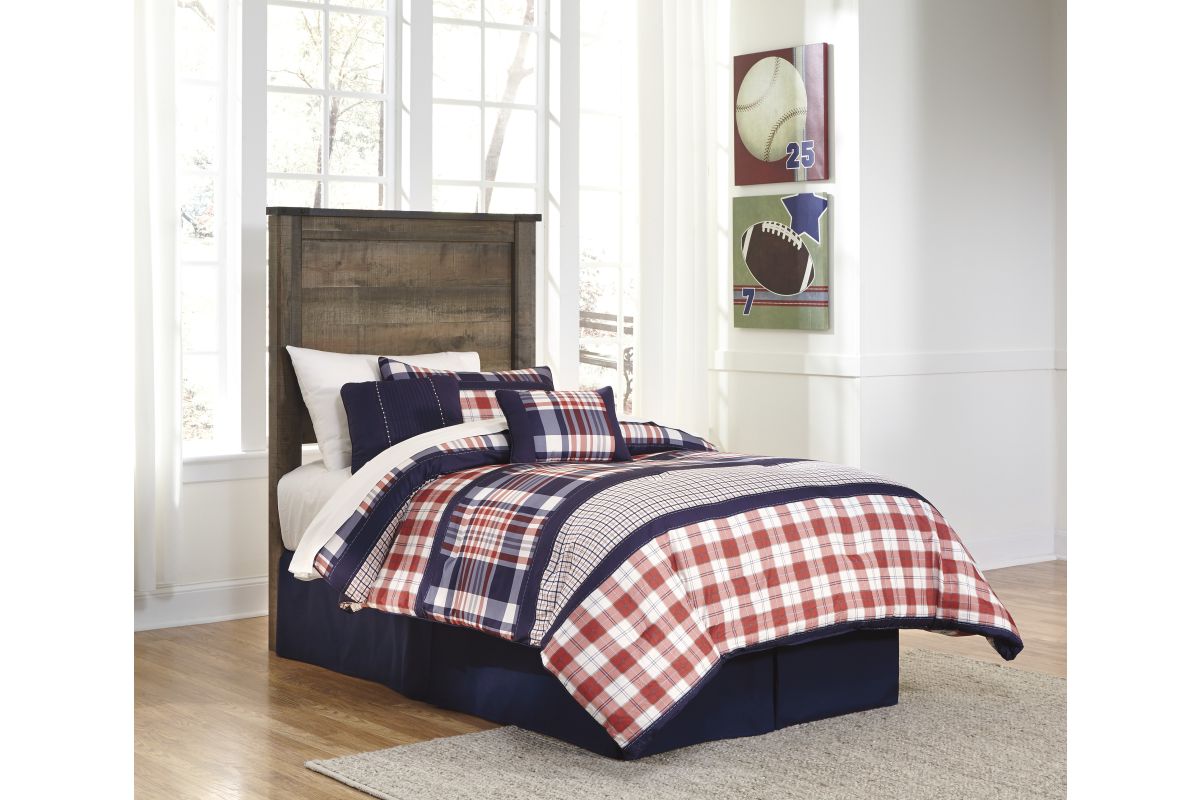 Whether she loves horses or he's a cowboy at heart, this twin panel headboard matches their authenticity. Its rustic finish, plank-style details and nailhead trim pay homage to reclaimed barn wood, making for a chic look loaded with charm. Assembly required. Headboard Only