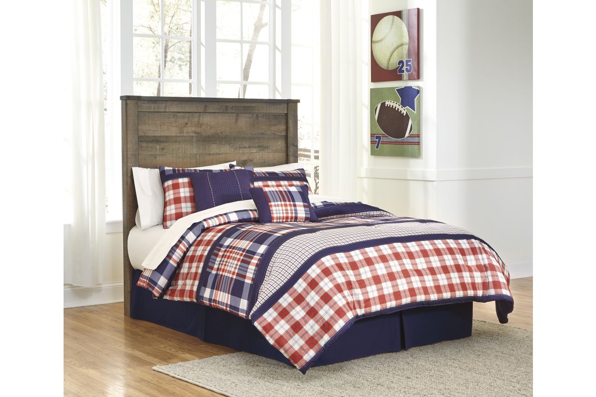 Whether she loves horses or he's a cowboy at heart, this full panel headboard matches their authenticity. Its rustic finish, plank-style details and nailhead trim pay homage to reclaimed barn wood, making for a chic look loaded with charm. Assembly required. Headboard Only