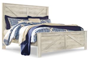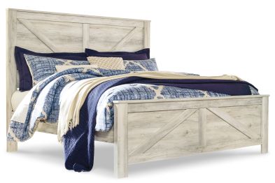 It�s gorgeous, it�s modern farmhouse, it�s a king crossbuck panel bed. Wispy, whitewash finish infuses so much character without masking the grain for that weathered, rustic look you crave. Clean-lined, classic panel styling provides a country chic bedroom retreat that�s a breath of fresh air. Mattress and foundation/box spring available, sold separately. Assembly required.