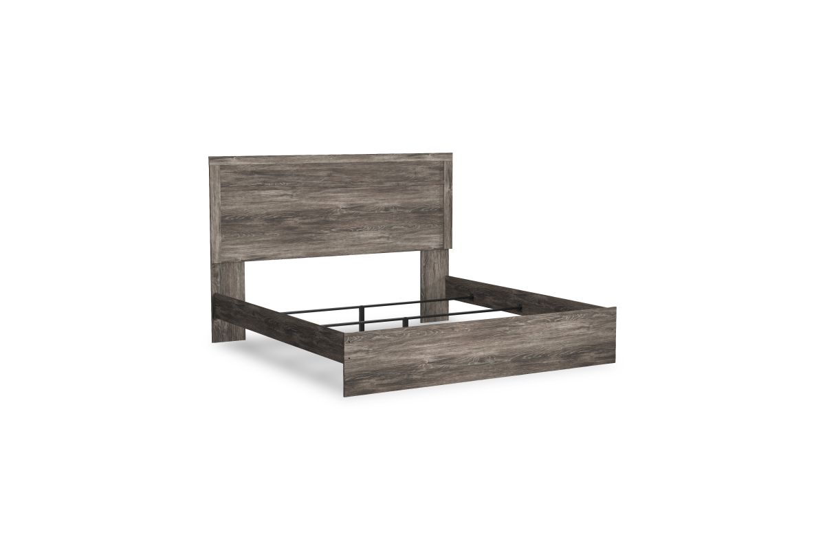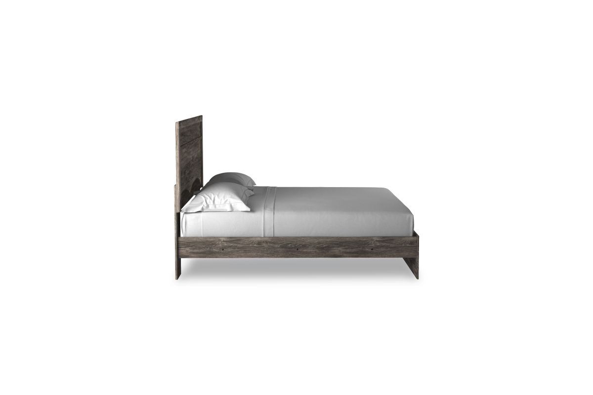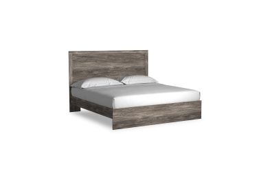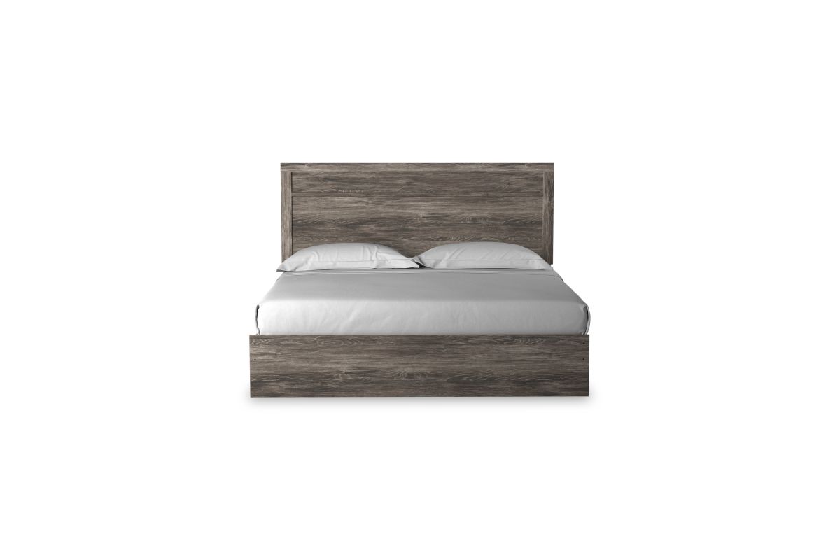 With its clean-lined look and modern attitude, this king panel bed is a fresh style awakening. A warm gray hue over replicated oak grain easily complements other furniture finishes. The simple, unadorned profile is given depth and dimension with the addition of plank-style moulding on the headboard—proof that beauty lies in the details.