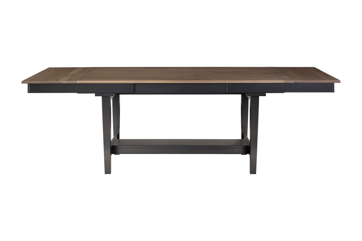 Featuring two 14" self-storing extension leaves this table easily transitions from intimate family dinners to gathering for holiday meals.