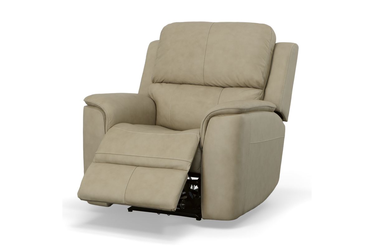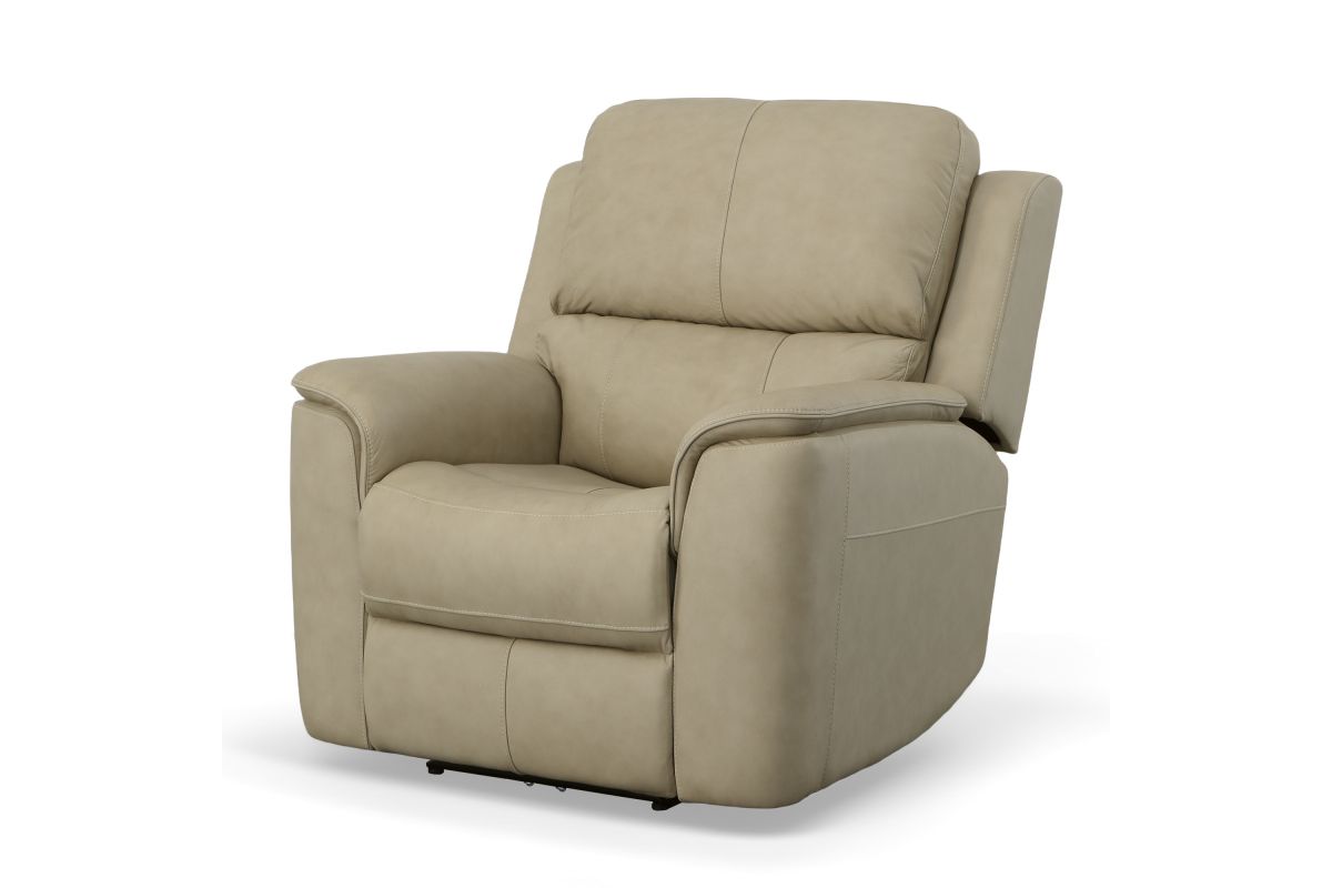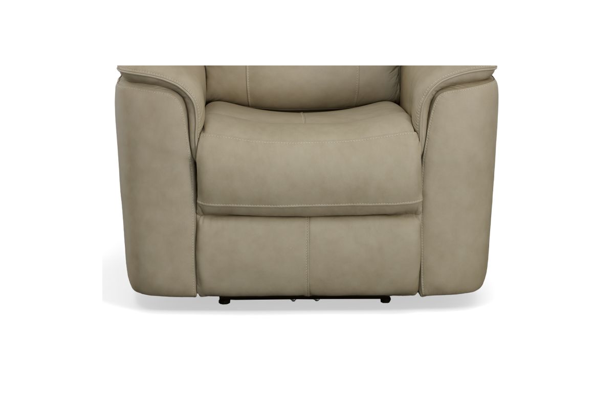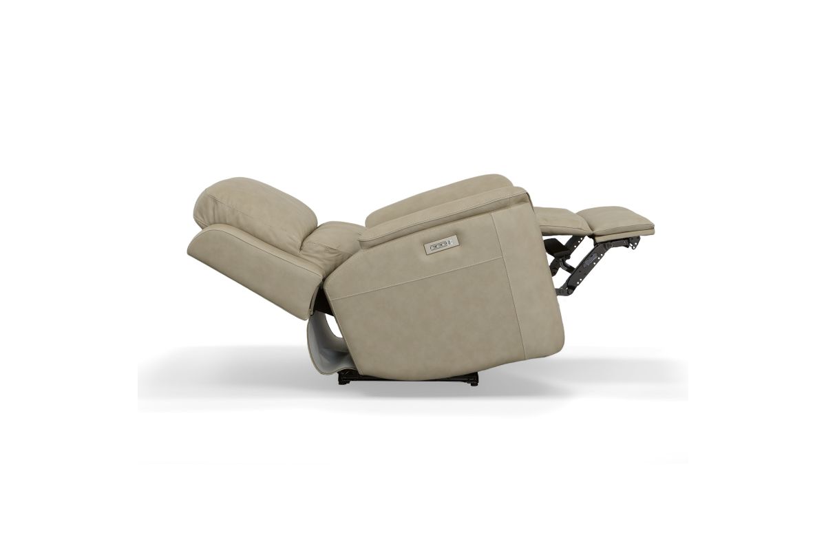 Treat yourself to a comfortable yet refined sitting experience with the Oliver leather power swivel recliner with power headrest and lumbar. This generously scaled frame is upholstered in a durable, sumptuous leather, and features a contoured seat and padded arms with a unique sculptural shape and welt trim. Power recline, headrest and lumbar control on the right side allows for customized comfort, and an included USB port provides convenient device charging. The Zero Gravity recline technology gives the feeling of weightlessness while Flexsteel's patented Blue Steel Spring™ provides lasting seat support.