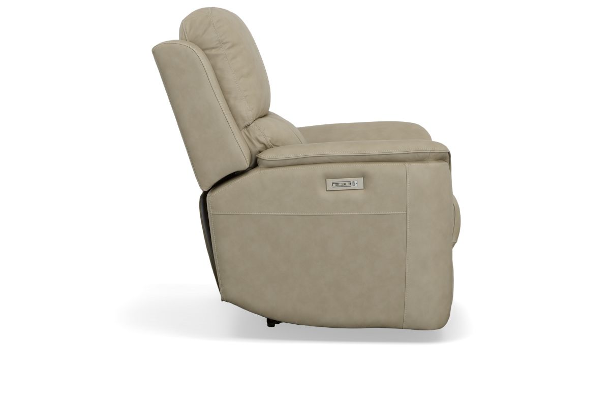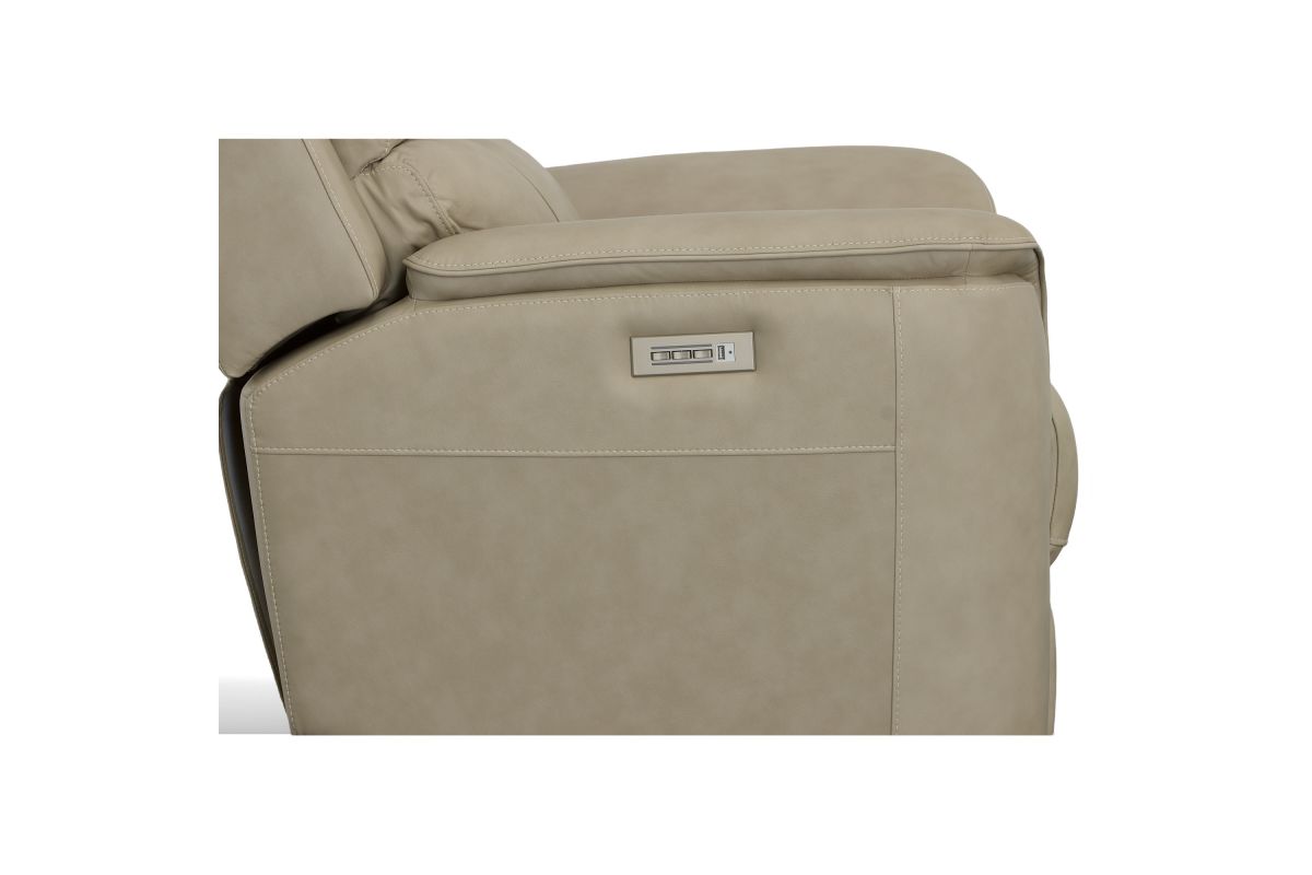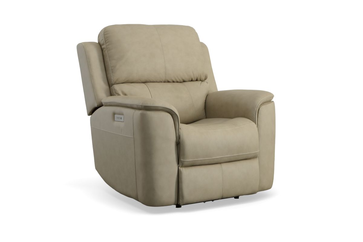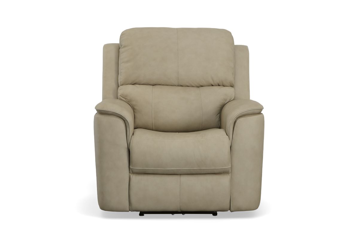 Treat yourself to a comfortable yet refined sitting experience with the Oliver leather power swivel recliner with power headrest and lumbar. This generously scaled frame is upholstered in a durable, sumptuous leather, and features a contoured seat and padded arms with a unique sculptural shape and welt trim. Power recline, headrest and lumbar control on the right side allows for customized comfort, and an included USB port provides convenient device charging. The Zero Gravity recline technology gives the feeling of weightlessness while Flexsteel's patented Blue Steel Spring™ provides lasting seat support.