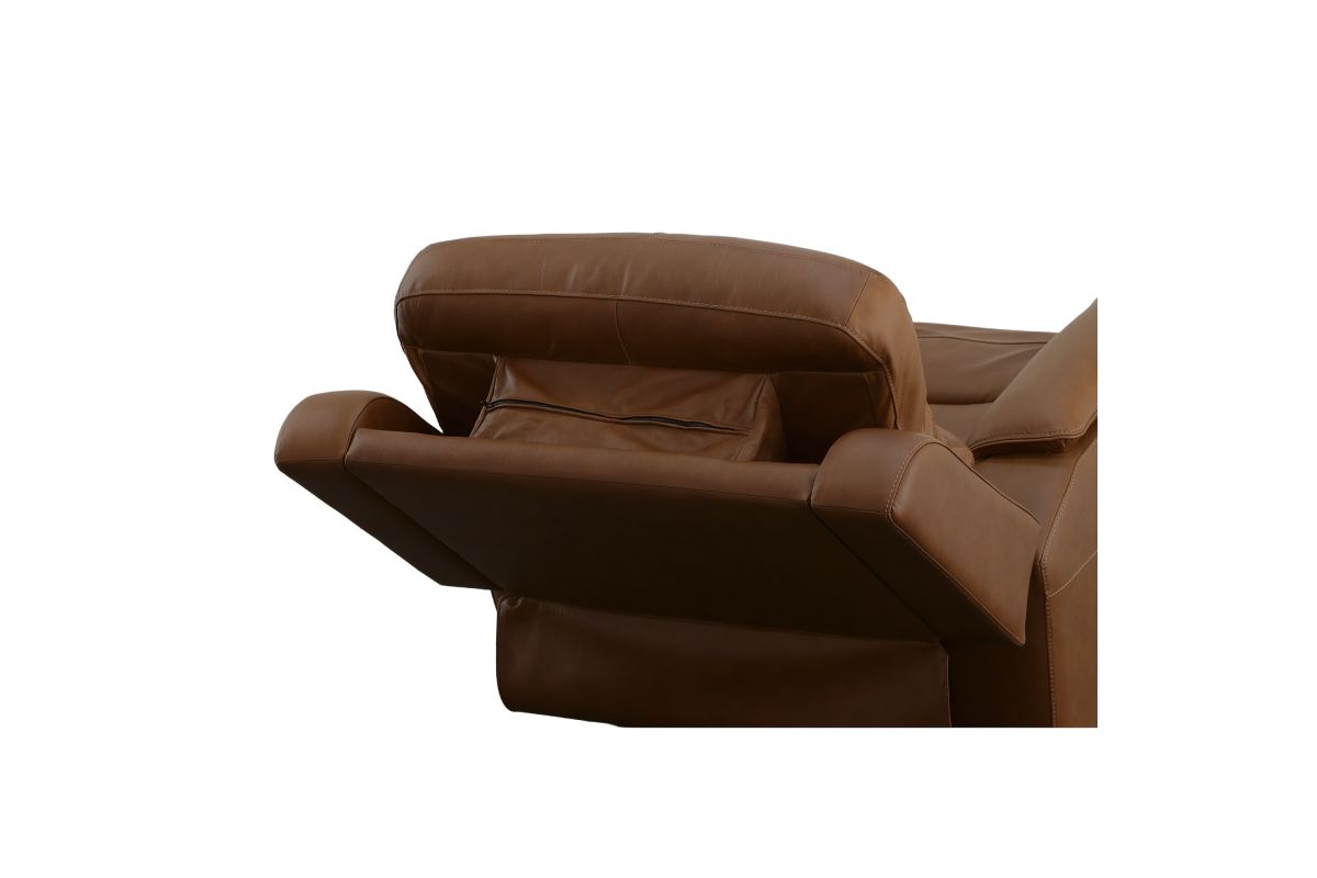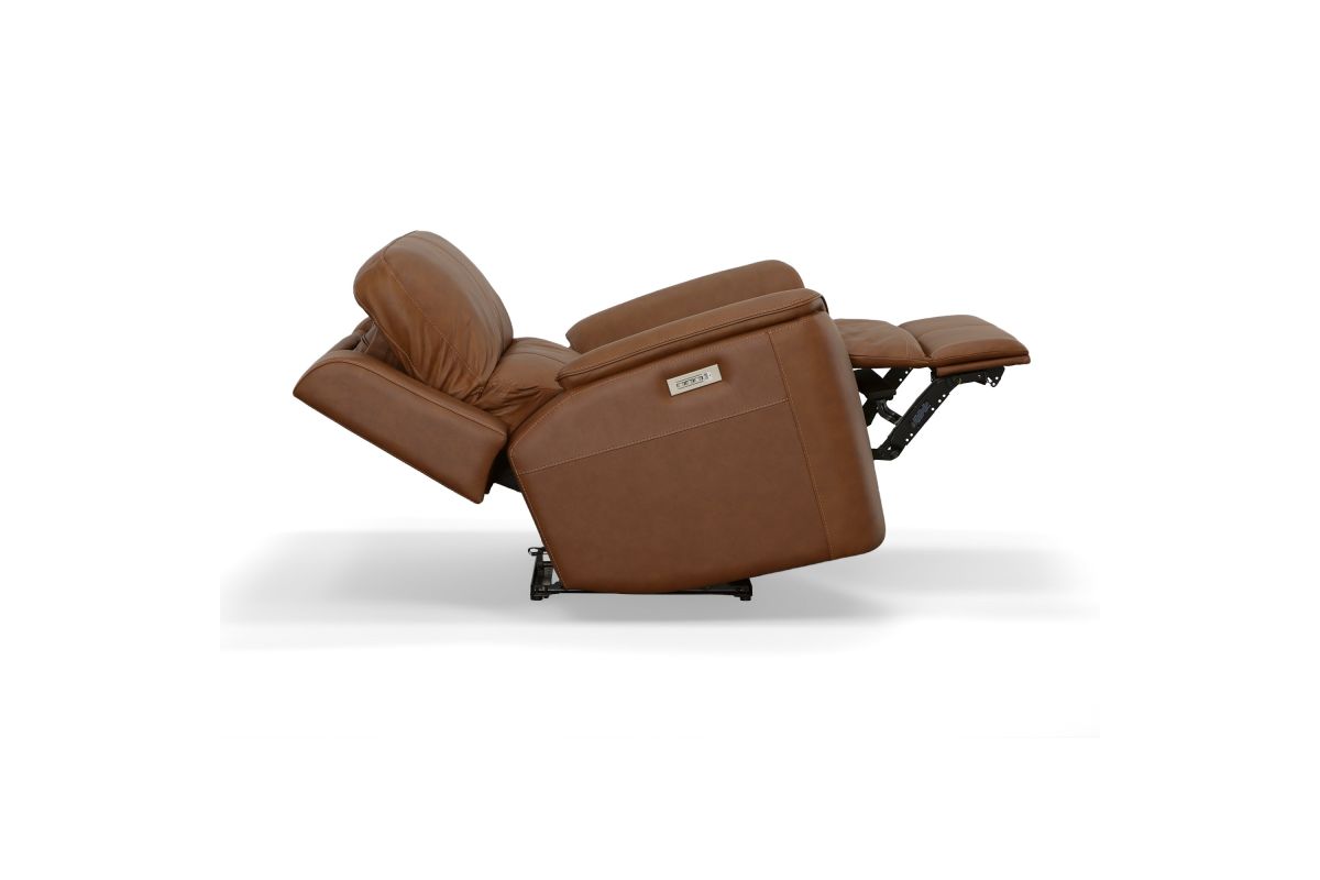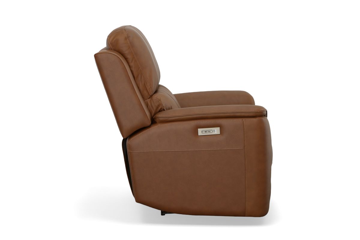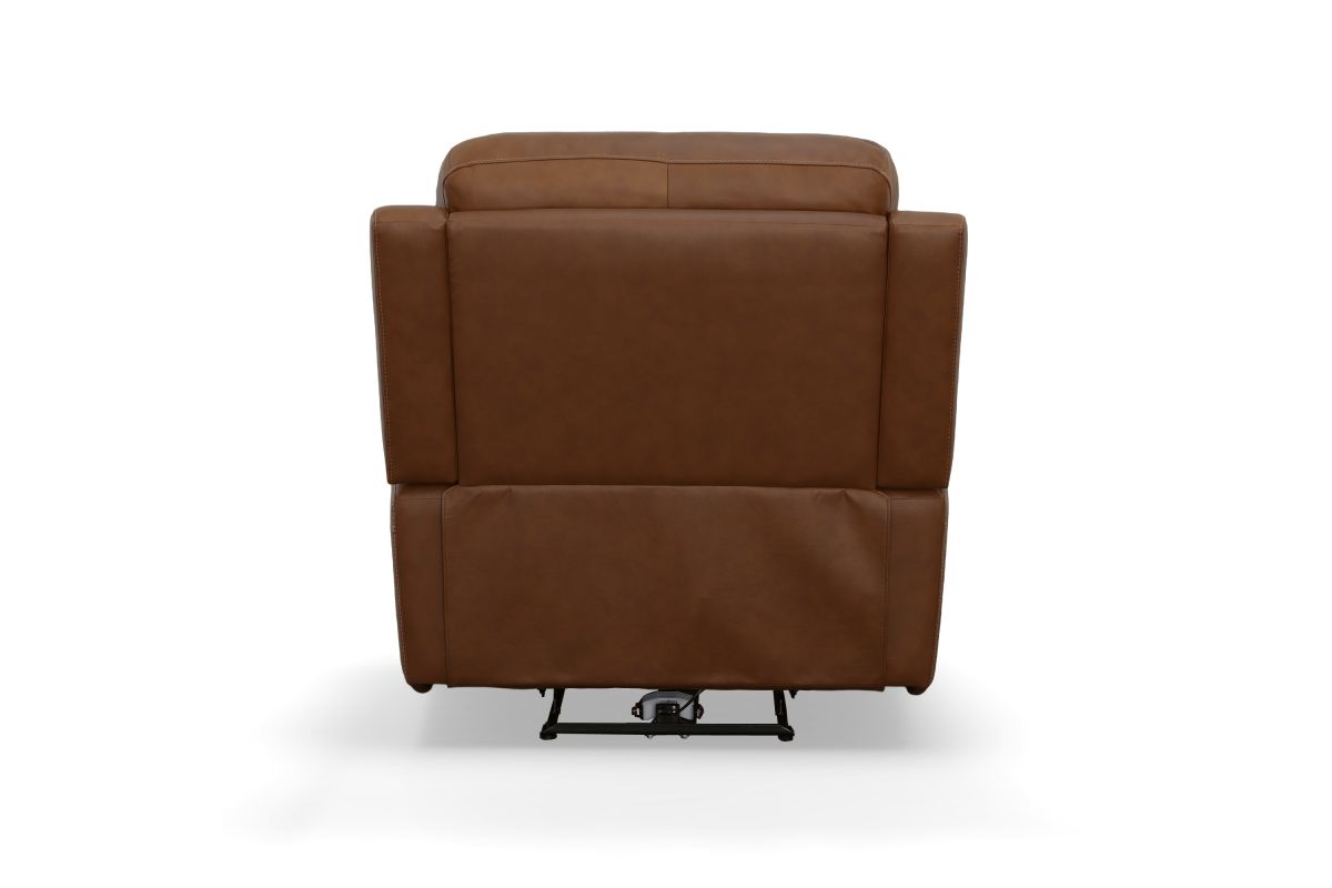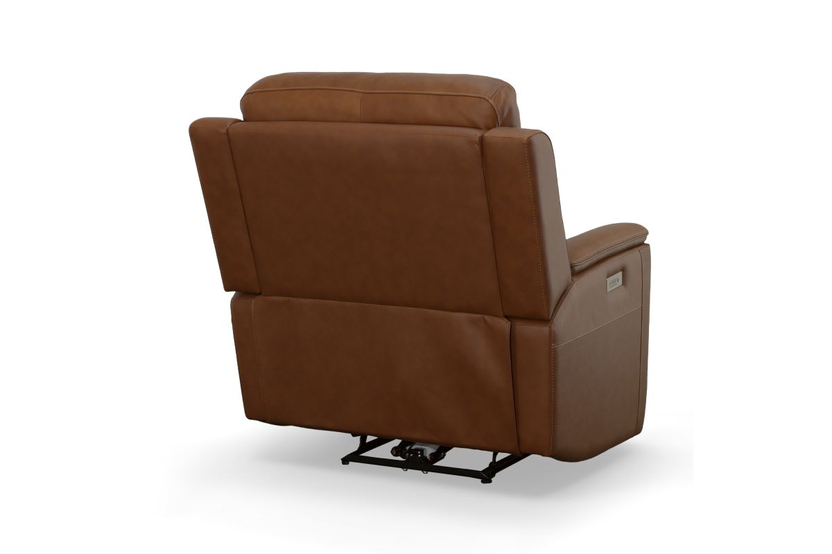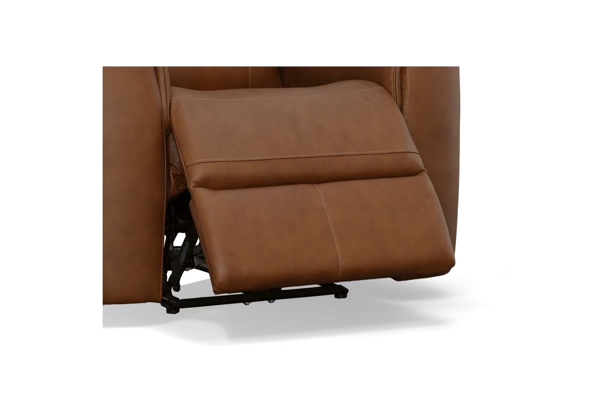 Treat yourself to a comfortable yet refined sitting experience with the Oliver leather power swivel recliner with power headrest and lumbar. This generously scaled frame is upholstered in a durable, sumptuous leather, and features a contoured seat and padded arms with a unique sculptural shape and welt trim. Power recline, headrest and lumbar control on the right side allows for customized comfort, and an included USB port provides convenient device charging. The Zero Gravity recline technology gives the feeling of weightlessness while Flexsteel's patented Blue Steel Spring™ provides lasting seat support.