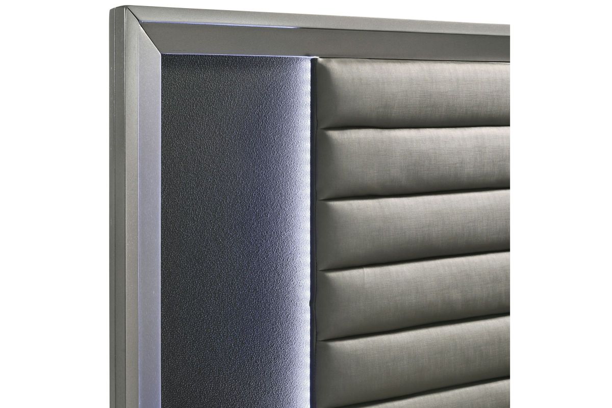 - Subtle Glam: The eye-catching bed features a back lit, rolled upholstery panel, adding a comfortable place to lounge and another level of sophistication.