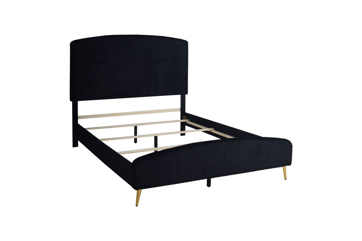 The Kailani Upholstered Panel Bed is a harmonious blend of modern design and luxurious comfort, making it a standout piece for any bedroom. This bed, which includes a headboard, footboard, side rails, and a bed slat kit, is crafted from a durable mix of solid rubberwood, engineered wood, and eco-friendly decorative laminate. This thoughtful construction not only ensures longevity but also offers resistance to scratches, moisture, and stains, keeping your bed looking pristine with minimal upkeep. The clean lines, sleek silhouette, and chic ribbed texture of the bed bring a touch of modern minimalist elegance to your space. Wrapped in plush 100% Polyester Velvet, the eye-catching black upholstery adds warmth and sophistication, while the generously sized headboard provides a perfect spot to relax. The Kailani Bed is not just a piece of furniture—it's a refined statement of style and comfort, designed to create a serene and sophisticated bedroom retreat.