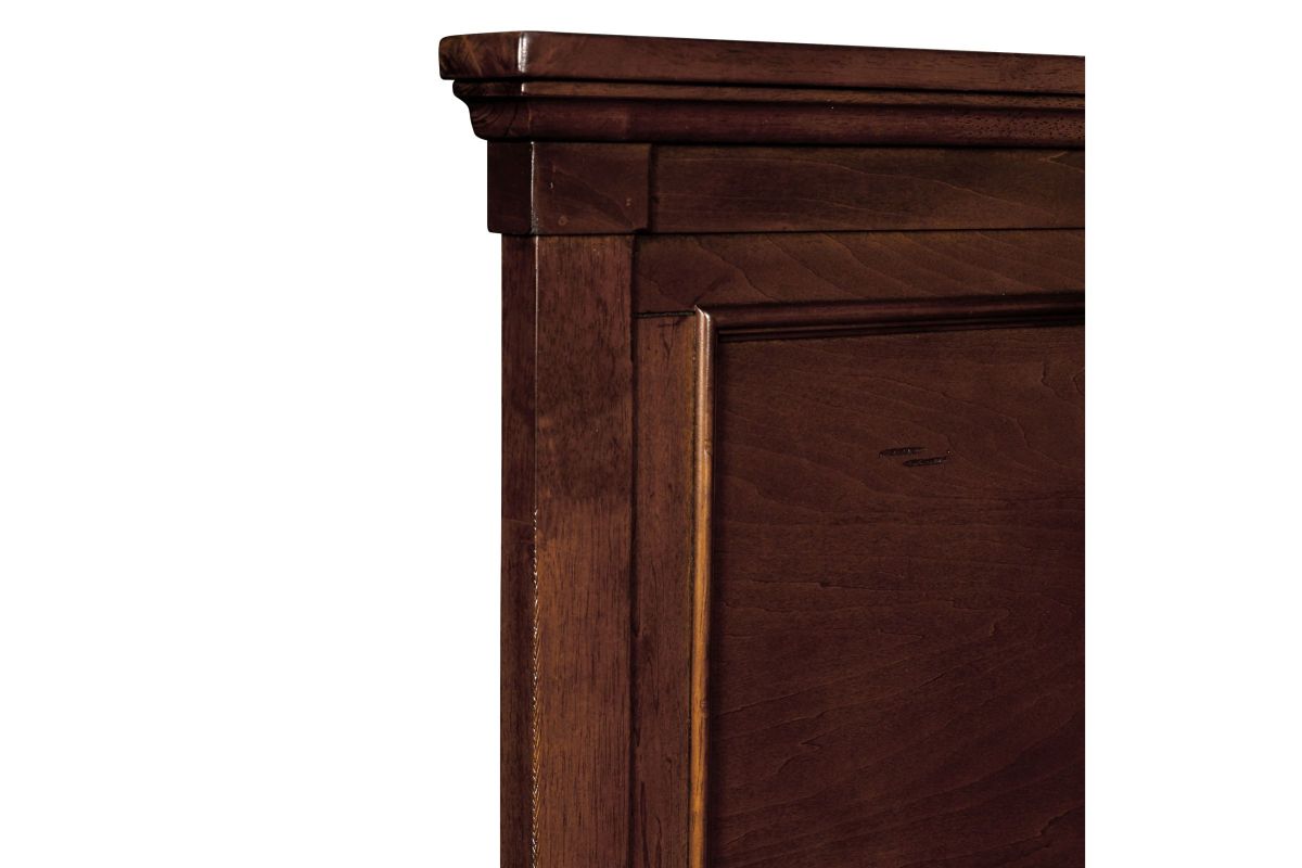 The Tamarack Wood Panel Bed in brown cherry is a true standout, showcasing durable construction with a blend of solid poplar, basswood veneers, and eco-friendly manufactured wood for unmatched strength and longevity. This bed's versatile transitional style masterfully combines contemporary clean lines with classic paneled detailing, effortlessly merging modern and traditional aesthetics. The rich brown cherry finish provides a warm and inviting glow, enhancing the natural beauty of the wood and adding a touch of sophistication to any bedroom. This bed is not just a piece of furniture but a stylish statement in your bedroom. Assembly required. Includes: (1) Panel Headboard, (1) Footboard, (1) Slat Kit, (2) Side Rails