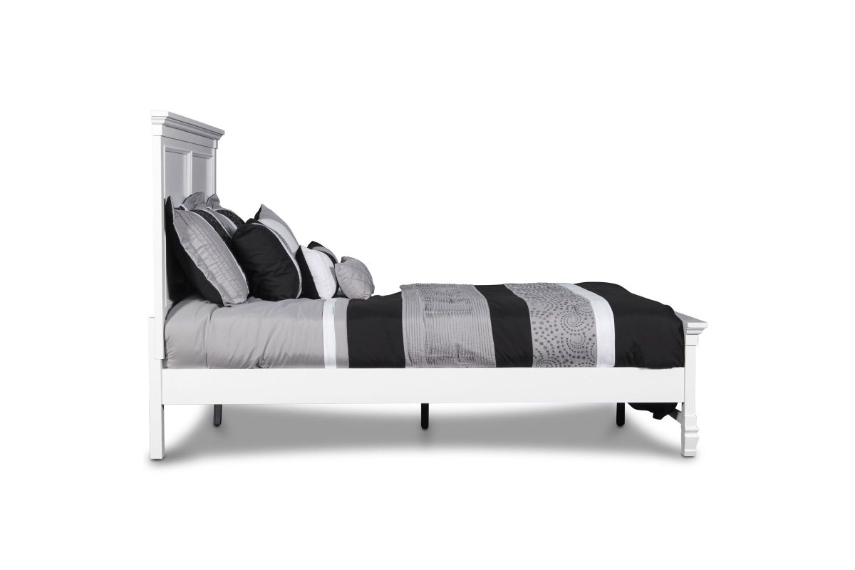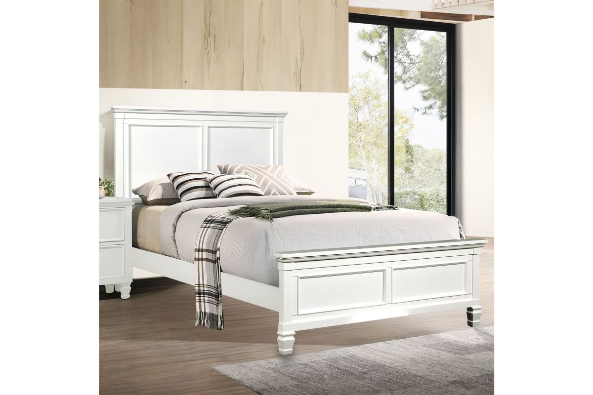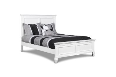 The Tamarack Wood Panel Bed in white is a true standout, showcasing durable construction with a blend of solid poplar, basswood veneers, and eco-friendly manufactured wood for unmatched strength and longevity. This bed's versatile transitional style masterfully combines contemporary clean lines with classic paneled detailing, effortlessly merging modern and traditional aesthetics. The chic white finish infuses a touch of sophistication and modernity, elevating the overall aesthetic and seamlessly complementing any decor style. This bed is not just a piece of furniture but a stylish statement in your bedroom. Assembly reqired. Includes: (1) Panel Headboard, (1) Footboard, (1) Slat Kit, (2) Side Rails