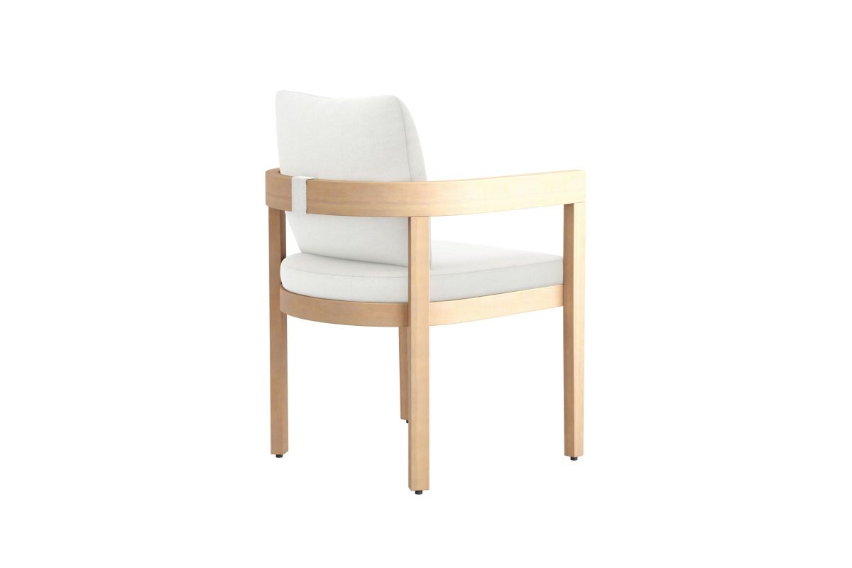 The Wesley Patio Side Chairs with White Cushions (Set of 6) combine durability, comfort, and modern elegance to elevate any outdoor dining space. Expertly crafted from FSC-Certified Acacia solid wood, these chairs offer exceptional strength and natural resistance to the elements, ensuring long-lasting beauty and performance. The expertly applied light, clear multistep finish enhances the natural wood grain’s rich texture and color while providing a protective layer for added durability in outdoor environments. Designed for comfort, each chair features high-density 6cm foam seat and back cushions wrapped in premium Sundura™ fabric—a solution-dyed 100% polyester that resists fading, mildew, and moisture, keeping the cushions vibrant and fresh season after season. The chairs' minimalist and airy design features sleek, clean lines and gently rounded shapes, blending modern sophistication with organic charm. Each piece is truly unique, showcasing natural wood grain variations with distinct patterns and textures that deliver timeless beauty and authentic character—ensuring no two chairs are exactly alike. Assembly required. What's Included: (6) Patio Dining Side Chairs