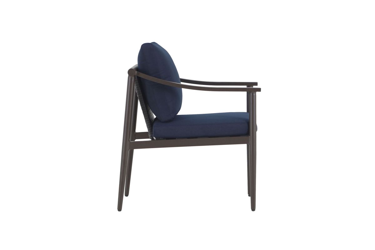 - Modern Minimalism: This outdoor patio dining chair features clean lines, a sleek dark frame, and blue cushions, embodying a minimalist aesthetic. The simple yet elegant design allows it to seamlessly blend into various outdoor settings, providing a stylish and understated look that complements contemporary outdoor spaces.