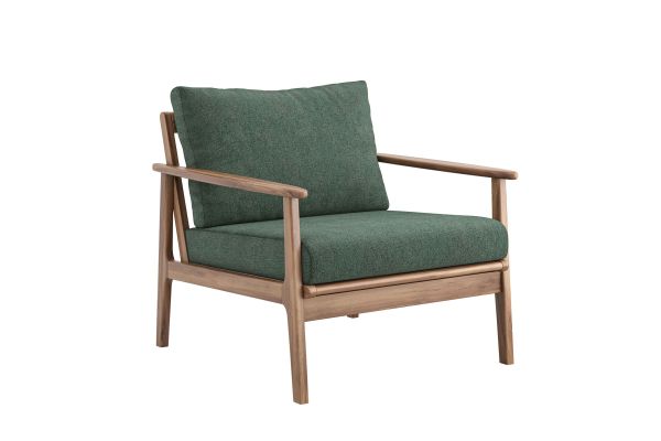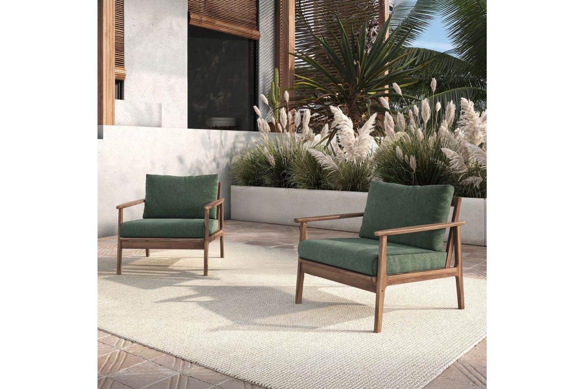 The Ashton Patio Club Chairs, available as a set of two, are designed to provide durability, comfort, and a sleek modern look for any outdoor setting. Constructed from FSC-Certified Acacia solid wood, these chairs offer exceptional strength and natural weather resistance, ensuring they maintain their beauty over time. The multistep clear finish enhances the MOSS wood grain while adding a protective layer for long-lasting durability. Upholstered in Moss Green, fade-resistant, all-weather Sundura™ fabric, these chairs provide superior protection against fading, mildew, and moisture, keeping them vibrant and fresh season after season. The high-density 12cm foam seat and back cushions offer resilient support and lasting comfort for relaxing outdoor experiences. With their clean, straight lines, slatted back design, and low-profile frame, the Ashton Club Chairs bring a minimalist yet functional elegance to your outdoor space, making them a perfect choice for stylish relaxation. Assembly required.