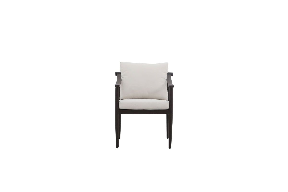 - Modern Minimalism: This outdoor patio dining chair features clean lines, a sleek dark frame, and neutral cushions, embodying a minimalist aesthetic. The simple yet elegant design allows it to seamlessly blend into various outdoor settings, providing a stylish and understated look that complements contemporary outdoor spaces.