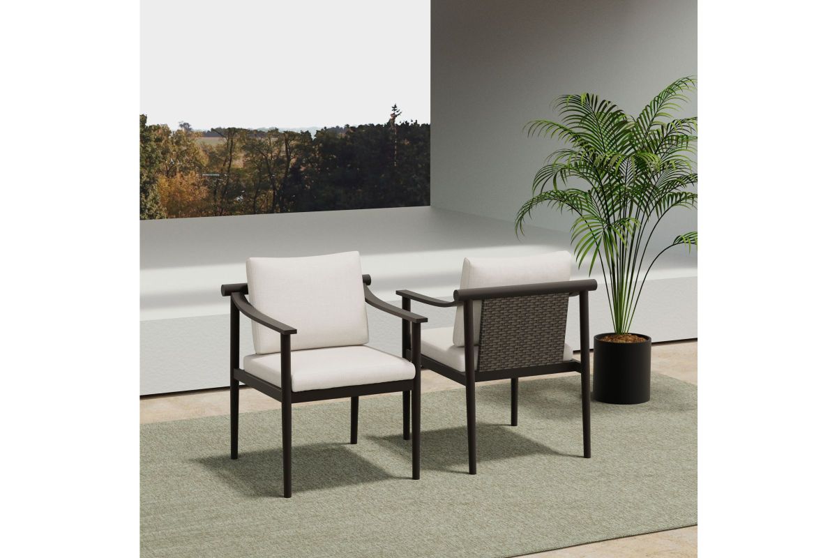 The Moana Patio Side Chairs offer a durable and stylish seating solution for your outdoor space. Built with aluminum frames and a baked-on powder coat finish, these chairs provide excellent resistance to scratches and the elements, ensuring long-lasting use. The high-density PE wicker construction delivers the classic look of wicker while being low-maintenance, water-resistant, and fade-proof. Featuring exclusive Sundura™ fabric, these chairs are designed with fade-resistant, all-weather cushions that maintain their vibrant color and resist mildew, moisture, and fading. Each chair includes 6cm thick foam seat and back cushions for superior comfort, making it perfect for relaxing outdoors. With a sleek, minimalist design, these chairs easily integrate into any outdoor decor, offering a modern yet timeless look. Ideal for outdoor dining or casual lounging, the Moana Patio Side Chairs are a smart choice for any patio or garden. No assembly required.
