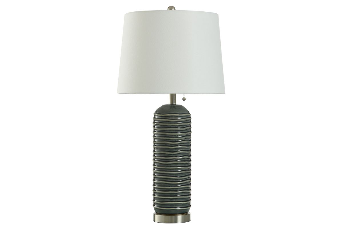 The Lagrange Table lamp has a ceramic body with a white shade.