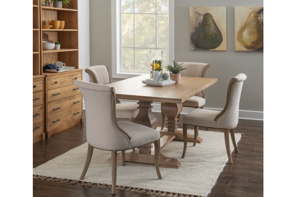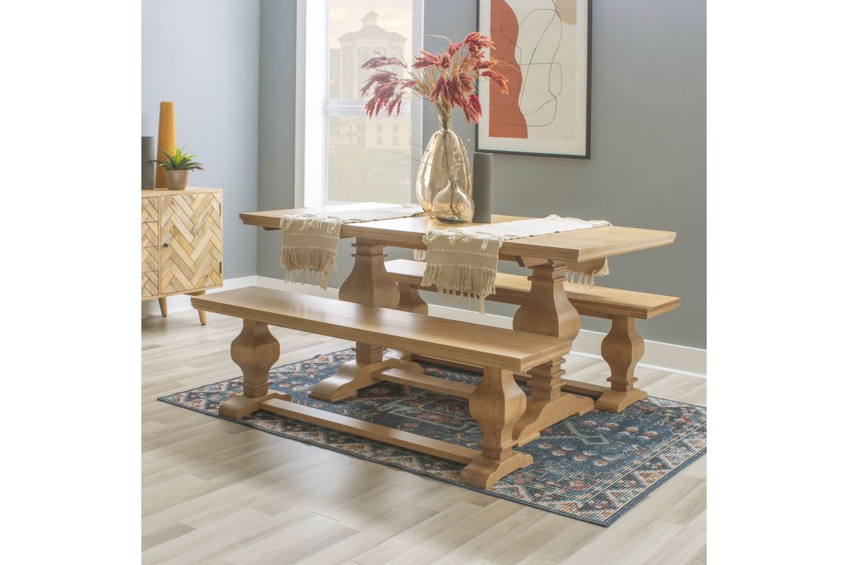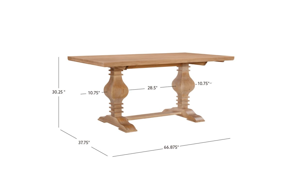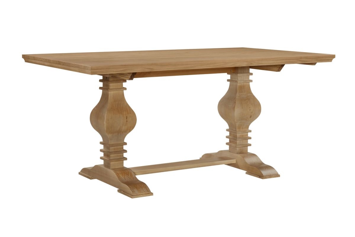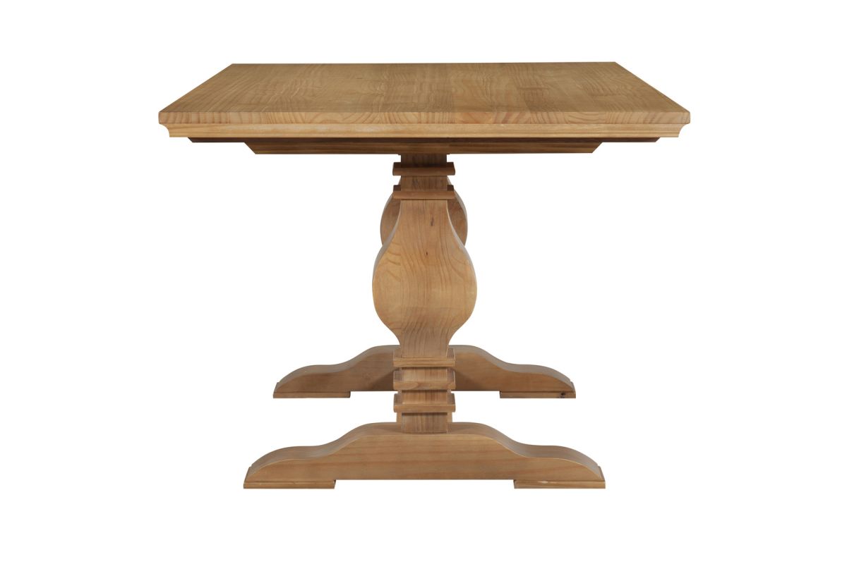 Classic and versatile, this double pedestal table creates an inviting look in any home. The solid design and 100% elliotis pine construction ensure years of beauty and use while the natural wood finish complements any color scheme. Refresh your dining area with this handsome table and enjoy gathering family and friends around its timeless design for years to come. Assembly required.