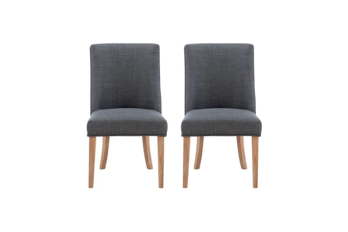 Elevate your dining space with our elegant 5-piece dining set. The table, crafted from solid pine wood in a rustic honey finish with a double pedestal design, exudes timeless charm. Each of the four solid wood chairs features a natural finish and is upholstered in luxurious dark grey linen weave fabric, woven from durable polyester for easy upkeep. With arc-shaped backrests for added comfort and a straightforward assembly process, this set seamlessly blends durability, style, and comfort, perfect for creating memorable dining experiences with family and friends. Assembly required.