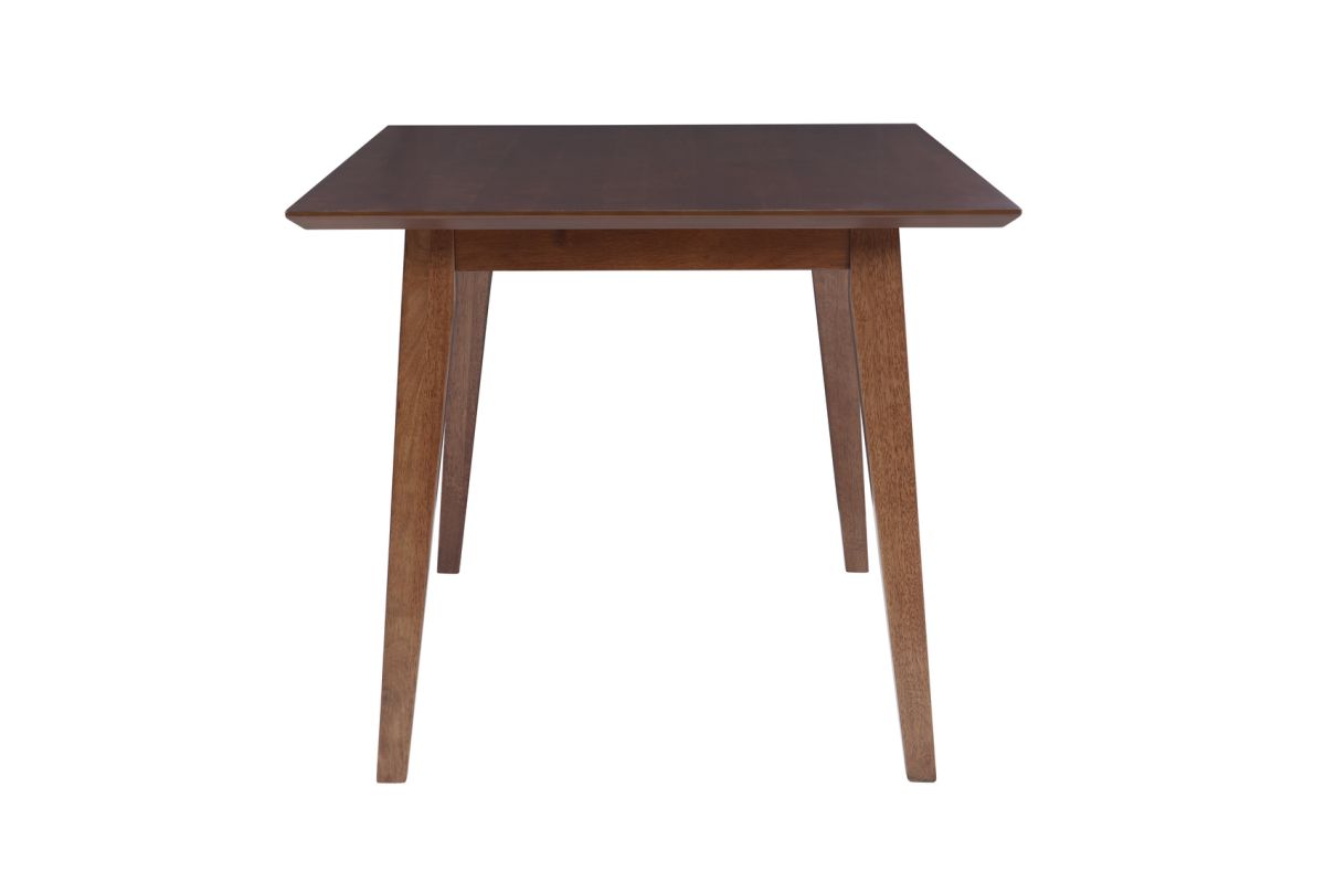 Gather your family around this elegant midcentury style dining table, designed as the ideal centerpiece for memorable meals. Tapered legs and a reversed beveled edge contribute to a streamlined and functional appearance. Comfortably seating up to six with ample legroom, the sturdy frame and rubberwood veneer feature a brown stain, embracing a modern farmhouse aesthetic. Enhance your dining experience with the full set, including a matching dining bench and four chairs, each adorned with beautiful handwoven paper rope seating. Embrace both style and comfort in this exquisite ensemble. Assembly required.