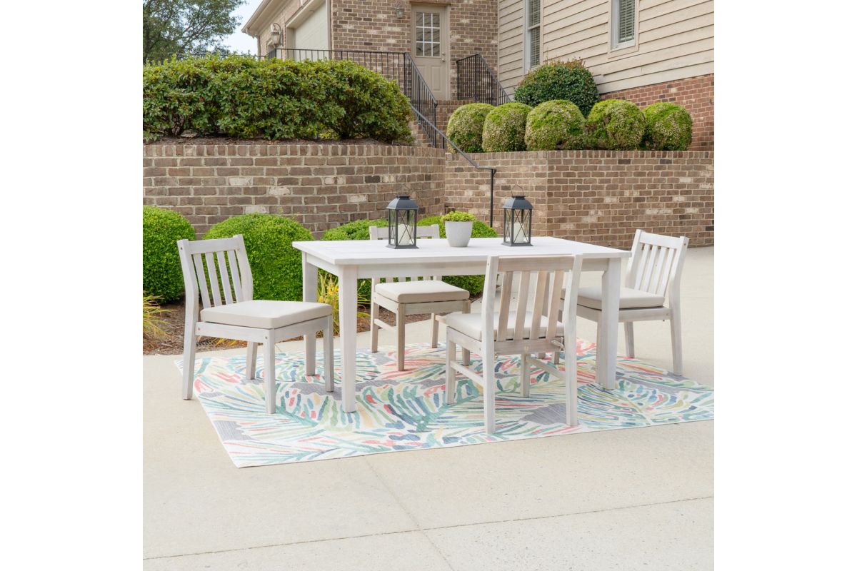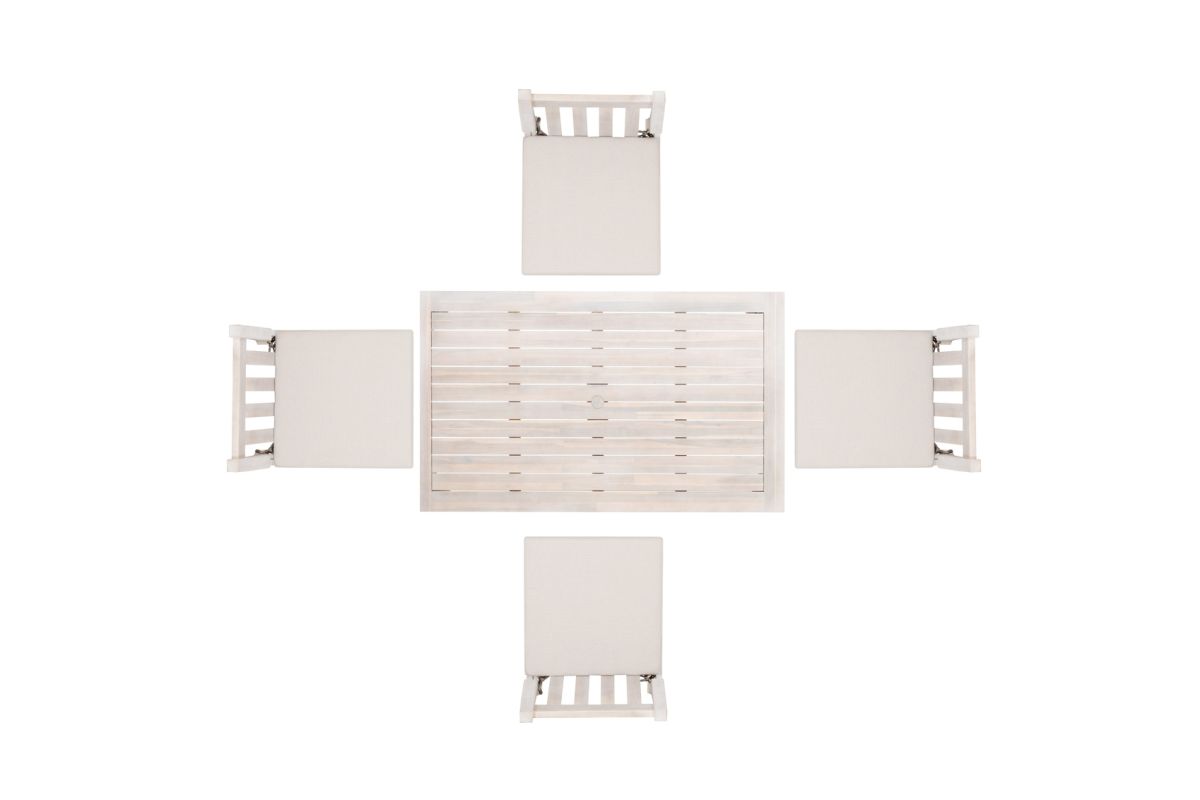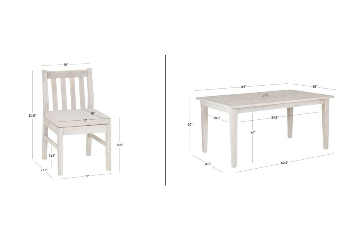 Transform your outdoor space into a haven of natural beauty with our 5 Piece Outdoor Dining Set. Crafted from durable acacia wood and finished in a brown oil stain, this set effortlessly marries style with substance. The set includes a spacious dining table and four armless chairs, each adorned with a comfortable beige olefin fabric cushion. With dimensions measuring 64"L x 38"D x 30"H, this set is a harmonious blend of form and function, offering a warm invitation to al fresco dining. Some assembly required