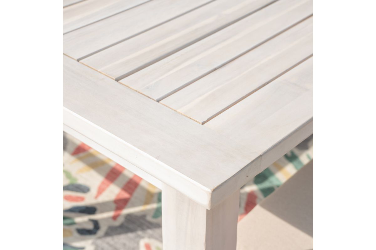 Gather in style around this beautiful Wood Dining Table, designed for lasting elegance and reliability. The solid acacia wood construction, treated with a natural oil stain finish, adds a touch of rustic charm to your dining space. With a robust weight capacity of 150lbs, this table is both functional and inviting. Create a warm, welcoming atmosphere for family dinners and gatherings with this sturdy centerpiece that effortlessly combines timeless design and practical durability. Assembly required.