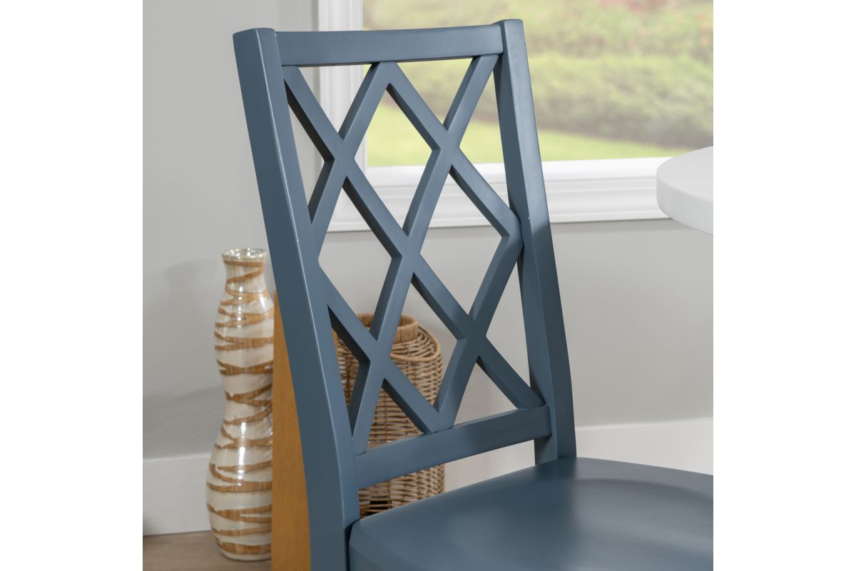 Elegant and timeless, this lattice-back dining chair strikes a beautiful balance between farmhouse warmth and streamlined modernity. The open backrest not only evokes the rustic charm of a country cottage, but also enhances airflow and a light, airy aesthetic. Constructed of solid wood and a plywood seat, the sturdy frame ensures strength and stability through years of daily use. The deep graphite finish provides a striking, yet adaptable tone that complements a variety of decor styles, from minimalist to industrial. Whether purchased as a set with matching chairs and a white table or mixed into your own eclectic arrangement, this chair will deliver both style and comfort to the heart of your home. Chair sold individually. Assembly required.
