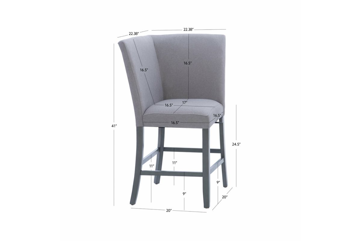 Sorry, the Seneca Gray Upholstered Corner Counter Seat is no longer available. We've left this page up for reference only. Check out the great alternatives on this page or call 248-481-2208 or Chat with a Gardner White Sales Specialist about similar products.