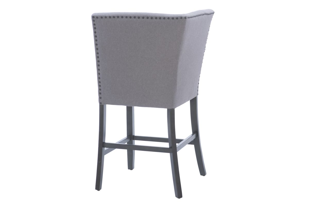 Feeling cornered and unsure how to furnish it? Maximize comfort with this versatile counter Height stool designed for corner spaces. It works as a standalone piece or connects two benches seamlessly. The grey linen look fabric cushions, foam padded for comfort, resist stains, tears, and fading. Pewter nail head trim along the upholstery's backside adds a noteworthy accent, enhancing its appeal in open spaces. Explore an array of matching pieces to create a custom dining or living room set tailored to your home. Assembly required.