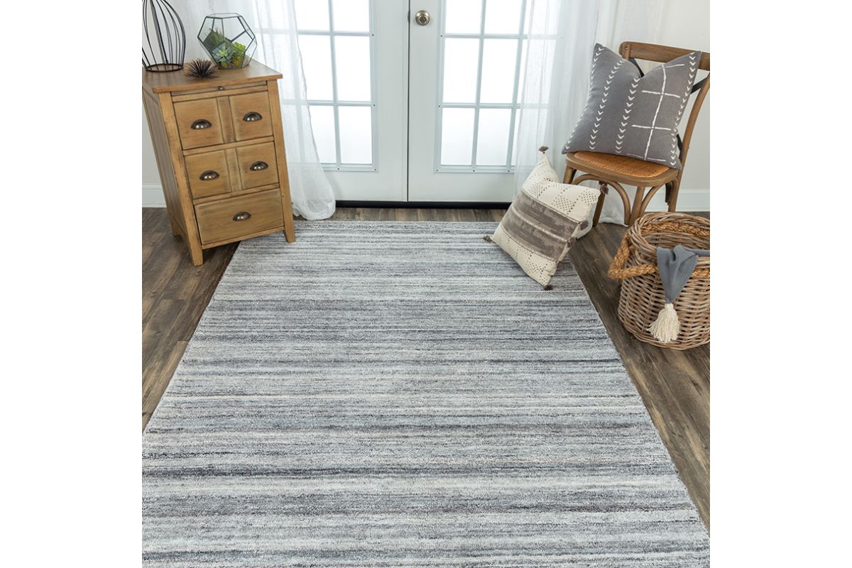 The Seasand rug is 100% recycled Polyester. This rug is transitional for any style room.