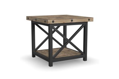 Cozy up to a good book with lighting placed right where you need it using the Carpenter lamp table. The perfect companion to an armchair or sofa, this rustic meets industrial table includes an open fixed shelf below provides an additional area to stack books or display décor. Inspired by the look of vintage workbenches, this lamp table features distressed acacia wood planks for a reclaimed look, hand-worked metal frames and exposed bolt heads. Assembly required.