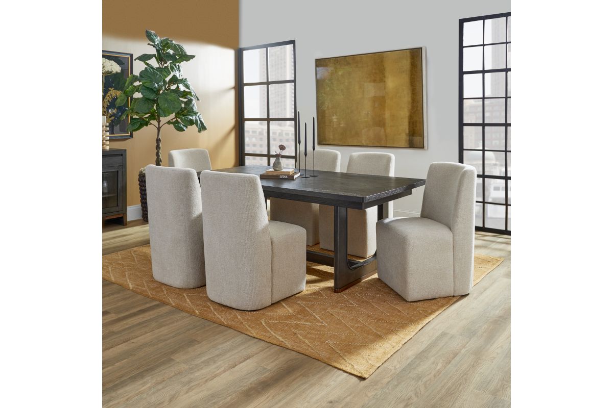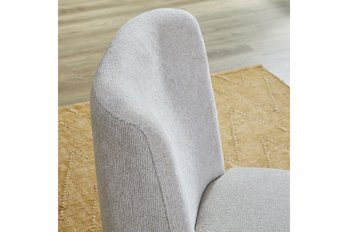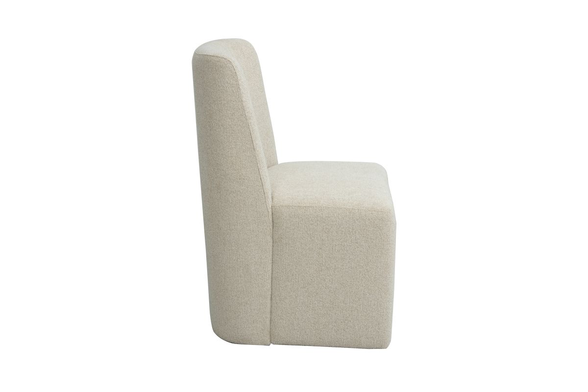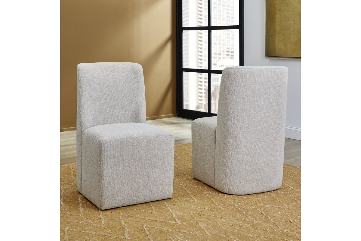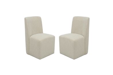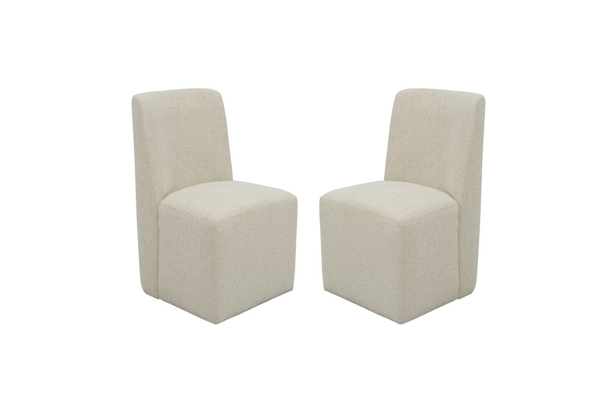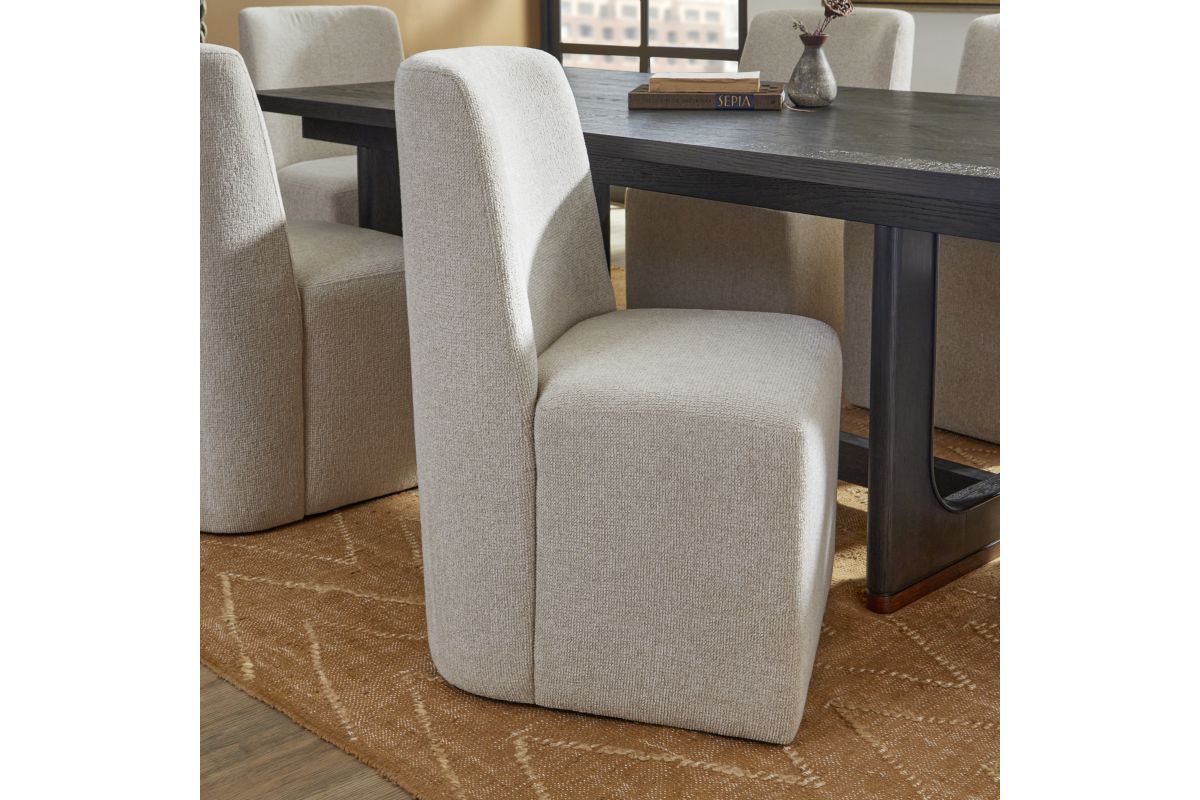 The perfect accents to complete your space, these chairs bring comfort and style together. Plush lines and a unique silhouette create a dining chair your guests will want to lounge in long after dinner. Upholstered in a plush and easy to clean performance fabric that resists stains and can stand up to everyday wear, these chairs are the new staple of your dining room.