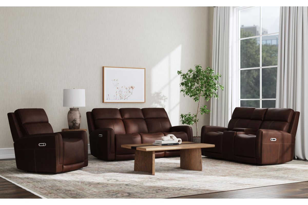 Alister Burnt Umber Power Gliding Loveseat with Console, Power Headrests & Lumbar