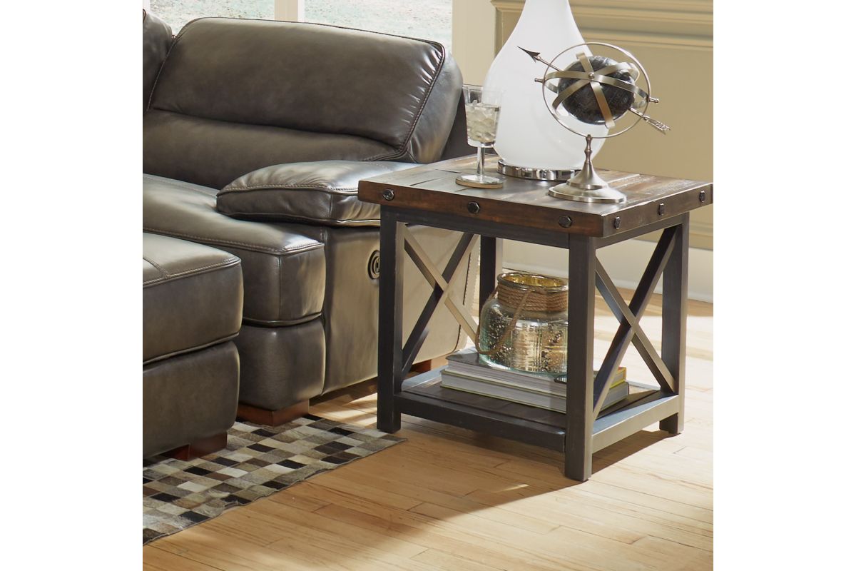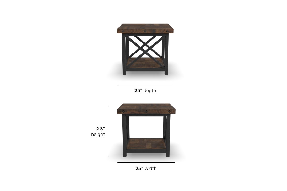 Cozy up to a good book with lighting placed right where you need it using the Carpenter lamp table. The perfect companion to an armchair or sofa, this rustic meets industrial table includes an open fixed shelf below provides an additional area to stack books or display décor. Inspired by the look of vintage workbenches, this lamp table features distressed acacia wood planks for a reclaimed look, hand-worked metal frames and exposed bolt heads. Assembly required.